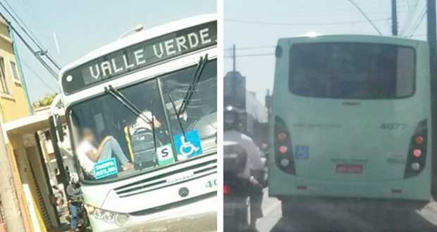 O fato foi registrado às 13h30 de segunda-feira, dia 7-08-2017, por um motorista que passava de carro ao lado do coletivo (inscrição 4077), na Rua Nove de Julho. A imagem mostra duas garotas, aparentemente estudantes, ao lado do condutor. “O ônibus não estava lotado”, disse o denunciante, que enviou as imagens para a direção da empresa.