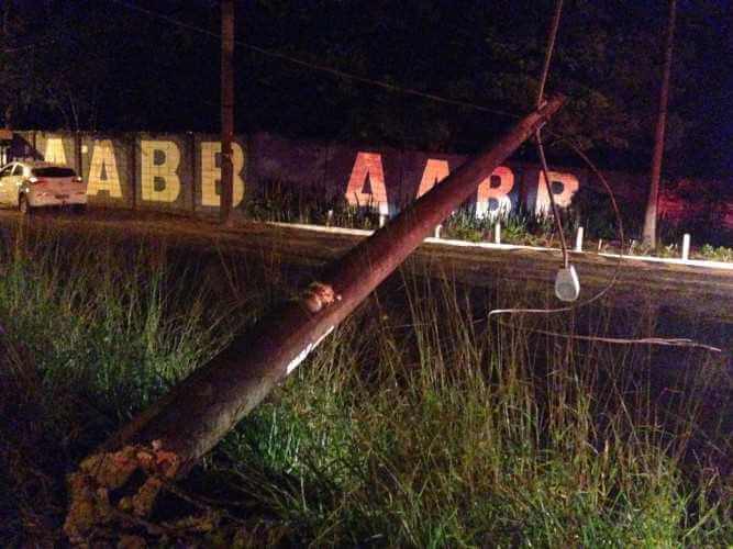 Segundo informações, após perder o controle do veículo, a motorista de 42 anos subiu no canteiro central que divide a pista e bateu no poste que ficou pendurado pelos fios. Conseguiu evitar atravessar a via e parou de frente com o muro da AABB (Associação Atlética Banco do Brasil). Apesar do estrago a condutora nada sofreu.