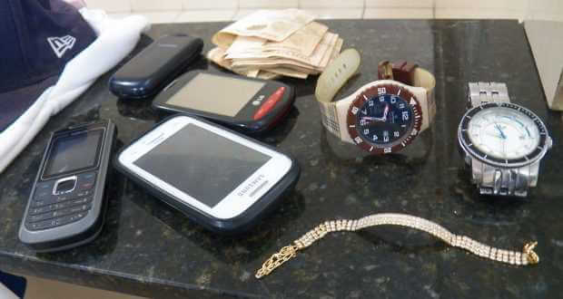 Os marginais adentraram na casa e renderam os outros trabalhadores. Roubaram joias, dinheiro, ferramentas de trabalho dos pedreiros, aparelhos eletrônicos dos proprietários do imóvel, entre outros. Depois de algum tempo que os bandidos estavam no imóvel um o chefe dos pedreiros chegou e também foi rendido. Os bandidos deixaram todos trancados em um cômodo e fugiram levando os objetos dos proprietários da casa, dinheiro e celulares dos trabalhadores. E ainda roubaram um veículo Palio das vítimas. Quando eles saíram uma das vítimas ligou para a esposa e pediu ajuda. A esposa acionou a PM. Diversas equipes da PM e motos da ROCAM começaram a patrulhar e segundo o sargento Jenuy, no bairro Jacobucci, os policiais se depararam com o Palio roubado. Um Gol da cor prata foi abandonado e eles saíram pulando muros e telhados de casa. Dois indivíduos identificados como Francinil da Silva Machado, de 20 anos e Thalison Frederico Rafael de Freitas, de 19, foram detidos. Ainda de acordo com o sargento Jenuy com os detidos foram localizados R$ 500,00, joia, celulares, entre outros produtos. As vítimas recolheram os detidos como sendo os assaltantes. Um terceiro suspeito não foi detido. A dupla foi encaminhada ao Plantão Policial, autuada em flagrante por roubo qualificado e recolhida ao Centro de Triagem de São Carlos.