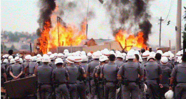 A Polícia Militar cumpre nesta terça-feira (28-03-2017) uma ordem de reintegração de posse contra a Ocupação Mandela, em Campinas-SP.