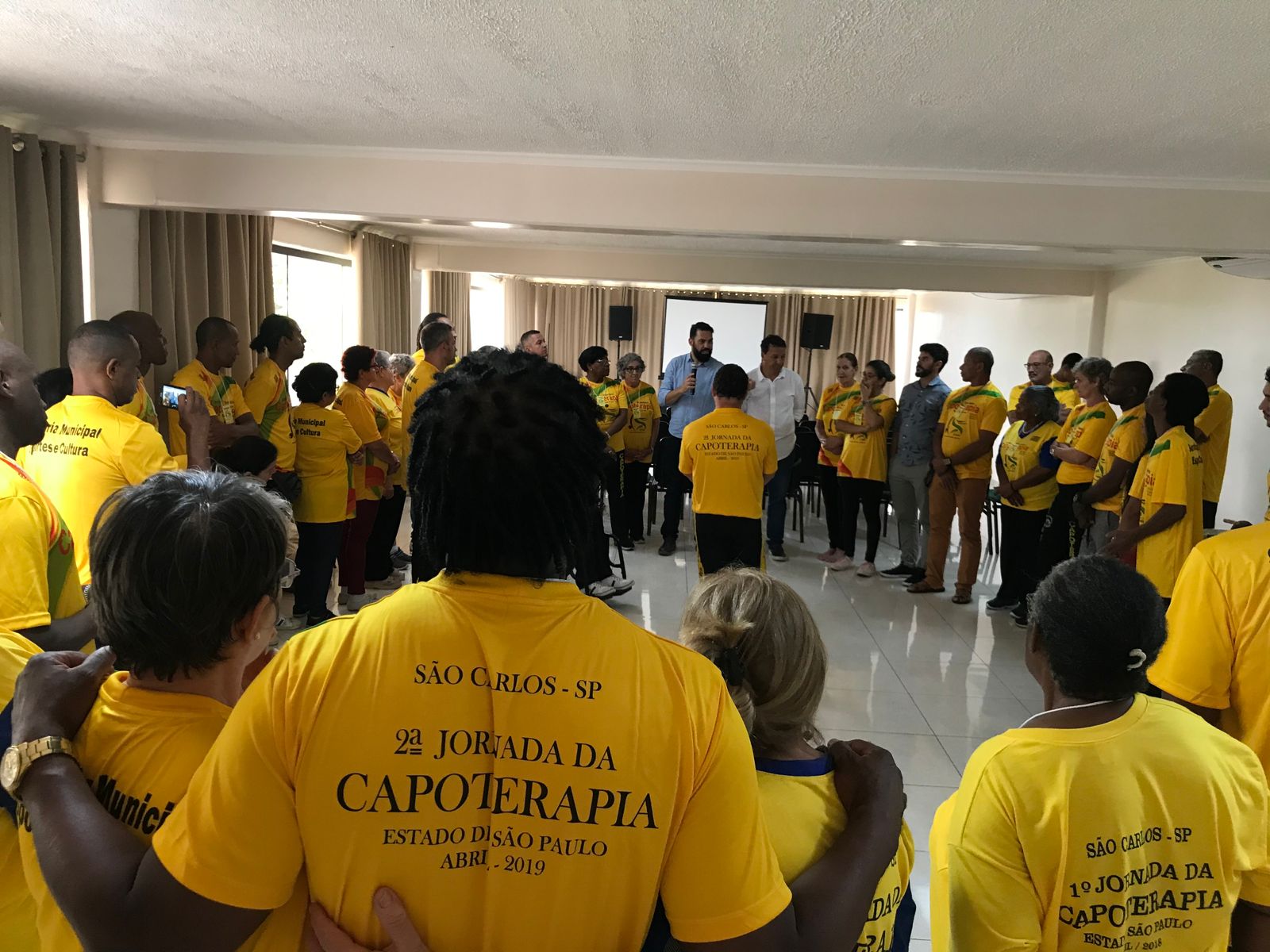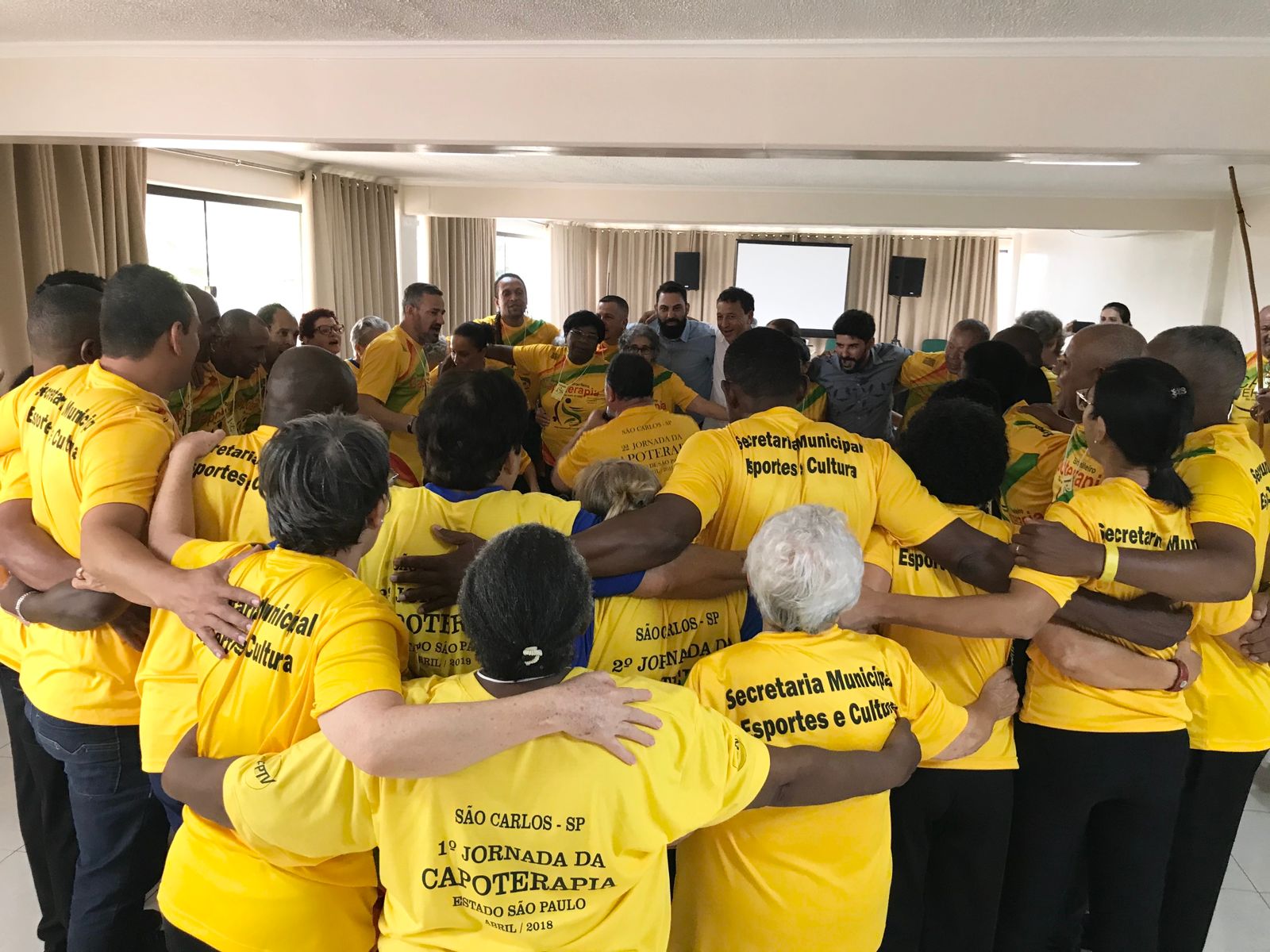 “É uma pratica que já se espalhou pelo Brasil, mais do que uma atividade física, a capoterapia tira as pessoas mais velhas de casa. A atividade ajuda muito na convivência, na alegria e na amizade. Com um ritmo bem brasileiro, envolve toda a comunidade através de cantigas de roda, acompanhadas de músicas, palmas e movimentos ritmados. Estamos com 3 grupos em São Carlos (SP), oferecendo uma melhor qualidade de vida aos idosos, com atenção e carinho. Nosso objetivo é levar com o evento alegria, uma vez que muitos idosos se encontra isolados em suas casas, e também minimizar os problemas de saúde física e mental como a depressão, além de aumentar cada vez mais esse número”, afirmou Mestre Taroba, coordenador da Capoterapia em São Carlos (SP).