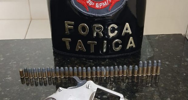 Os homens empreenderam fuga, mas o dono do carro foi abordado e com o mesmo nada de ilícito foi encontrado. Em revista veicular foi localizado embaixo do banco do passageiro um revólver calibre, 22 municiado com 07 munições e mais 24 sobressalentes.