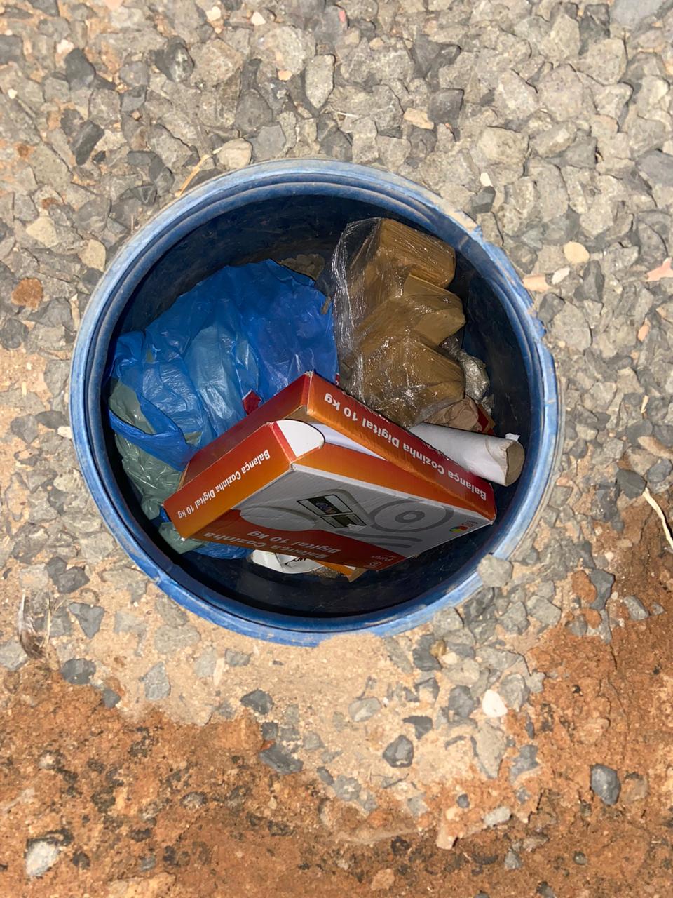 Realizado vistoria no imóvel, foi localizado enterrado no quintal da residência um barril contendo farta quantia de drogas.