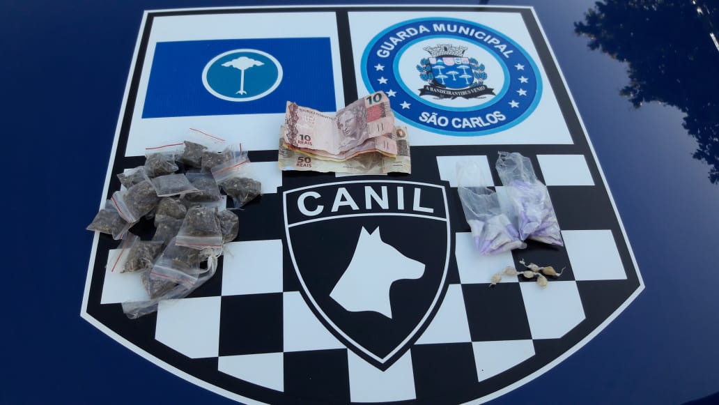 O Canil da Guarda Municipal deteve nesta tarde de sábado, 10/04/2021, um homem de 40 anos por tráfico de drogas na ( PRAÇA SÉRGIO LUIZ ROCHA ), RUA DR. PROCÓPIO DE TOLEDO MALTA , São Carlos-SP.