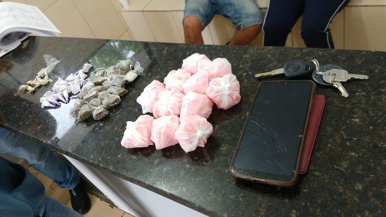 Foram encontraram invólucros de maconha, eppendorfs com cocaína e pedras de crack.