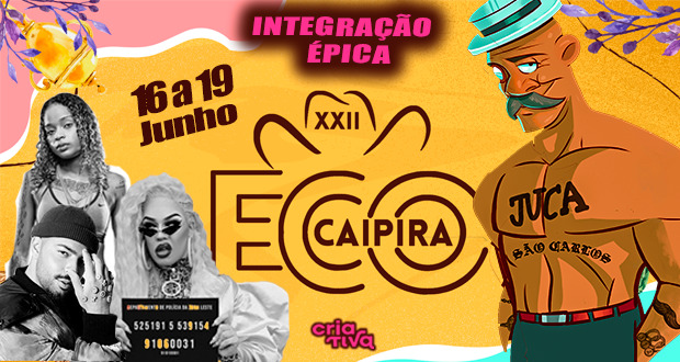 A integração pode ser compreendida como um fenômeno multifacetado, que não se resume apenas aos componentes curriculares e salas de aula, mas também a forma como as relações são percebidas pelo indivíduo fora dos cadernos. Não importa qual é o seu estilo musical, a regra é interagir, curtir o melhor evento universitário da região: O ECO CAIPIRA que iria acontecer em Bauru, também nesse fim de semana prolongado, decidiu mudar a posição de suas velas e aportar na Capital Universitária. O ECO Caipira somado ao JUCA aponta para um resultado: uma Integração Universitária inesquecível. Ou seja, além dos jogos JUCA, a cidade contará com mais torneios acontecendo simultaneamente pela cidade, e, fora as atrações já divulgadas, virão mais por aí. As festas dos jogos acontecerão nos dias 16 e 18 de junho na aclamada Arena TUSCA. Para adquirir ingressos para as 12 horas de open bar do WAR JUCA – A Balada da Liga, acesse o site criativaagencia.com.br. WAR JUCA · 16/06 quinta-feira, das 17h às 6h – WAR JUCA: A conquista do território. GLÓRIA GROOVE, TURMA DO PAGODE, DJ LMB, LÉO DEROBI, BRUU, BERTAN. · 18/06 sábado, 18h as 7h – WAR JUCA: A batalha final. PEDRO SAMPAIO, MC DRICKA, BERTAN, JC NO BEAT, PATRICK MUNIZ, CAVERINHA, PAREDÃO, W-BEATS ECONO CAIPIRA · AGUARDEM