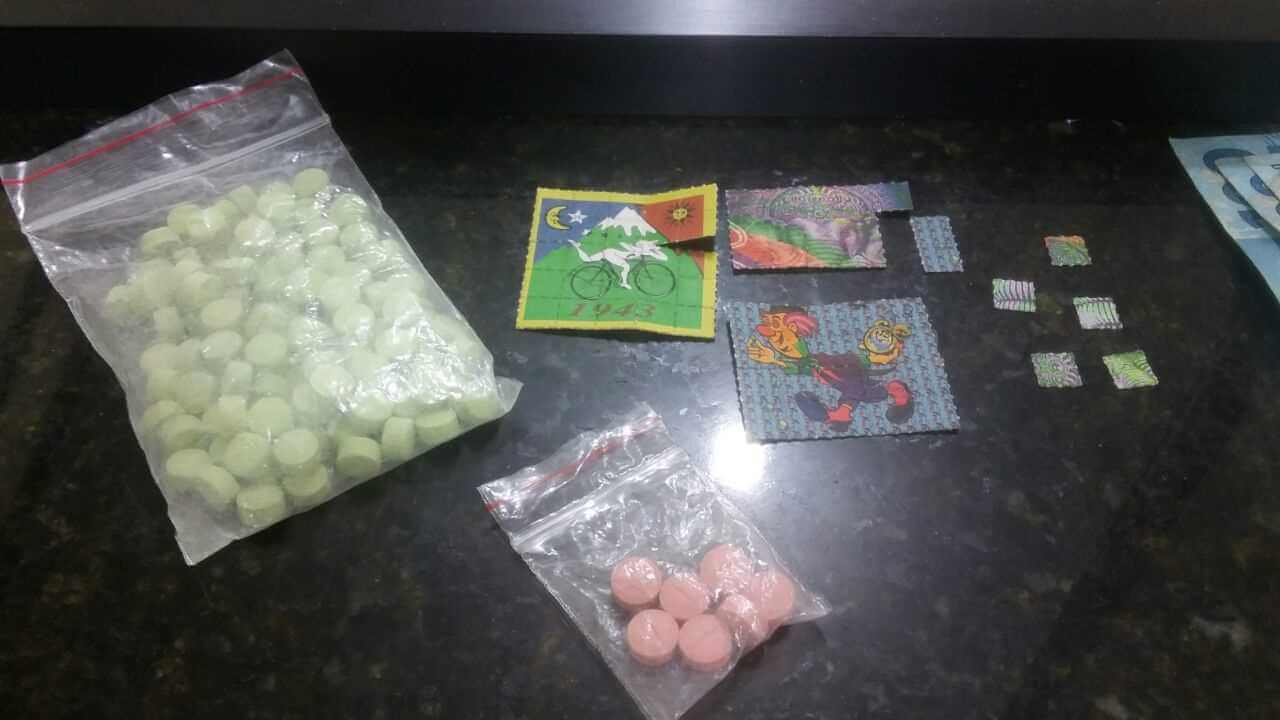 De acordo com boletim de ocorrência, por volta das 21:10 uma equipe da Força Tática, composta pelo sargento Edivaldo, cabo Rivaldo e soldado Formenton estava em patrulhamento preventivo quando se deparou com um indivíduo caminhando com um capacete na mão. Os policiais resolveram realizar a abordagem no mesmo. Durante revista pessoal foram localizados com o averiguado 60 micro pontos de LSD (dentro do tênis) . Foi feita diligência até sua casa, onde foram localizados mais 6 micro pontos da mesma droga. Os policiais verificaram que no celular de W. G. A, de 23 anos, morador na rua Luís Mascarim, bairro Cidade Aracy, havia uma conversa com um suposto traficante identificado como Luís. Ainda de acordo com a Polícia , o detido através do WhatsApp havia feito um pedido de 80 comprimidos de ecstasy. O suposto traficante havia respondido que estava em um bar situado na Avenida Comendador Alfredo Maffei e que o tal comprador poderia ir até lá buscar entorpecente. Viaturas diligenciaram até o bar e localizaram o indivíduo. Com o mesmo os policiais teriam encontrado a quantia de R$ 3.200( três mil e duzentos reais), duas embalagens contendo 107 compridos da referida droga, no bolso da calça do averiguado. Ambos foram encaminhados ao Plantão Policial onde negaram se conhecer e tão pouco serem traficantes. W. disse que ao ser abordado estava mesmo em poder do LSD, o qual havia comprado minutos antes de um traficante que ele não quis falar o nome. Disse que a droga era para uso próprio. Já Luís Ricardo Batista, de 33 anos, negou ser traficante e disse que parte do dinheiro apreendido era de suas férias. No Plantão Policial o delegado, Dr. Caio Iberê Gobato autuou Luís em flagrante por tráfico de droga e o recolheu ao Centro de Triagem. O outro detido foi qualificado e liberado. As drogas foram encaminhadas à Polícia Científica.