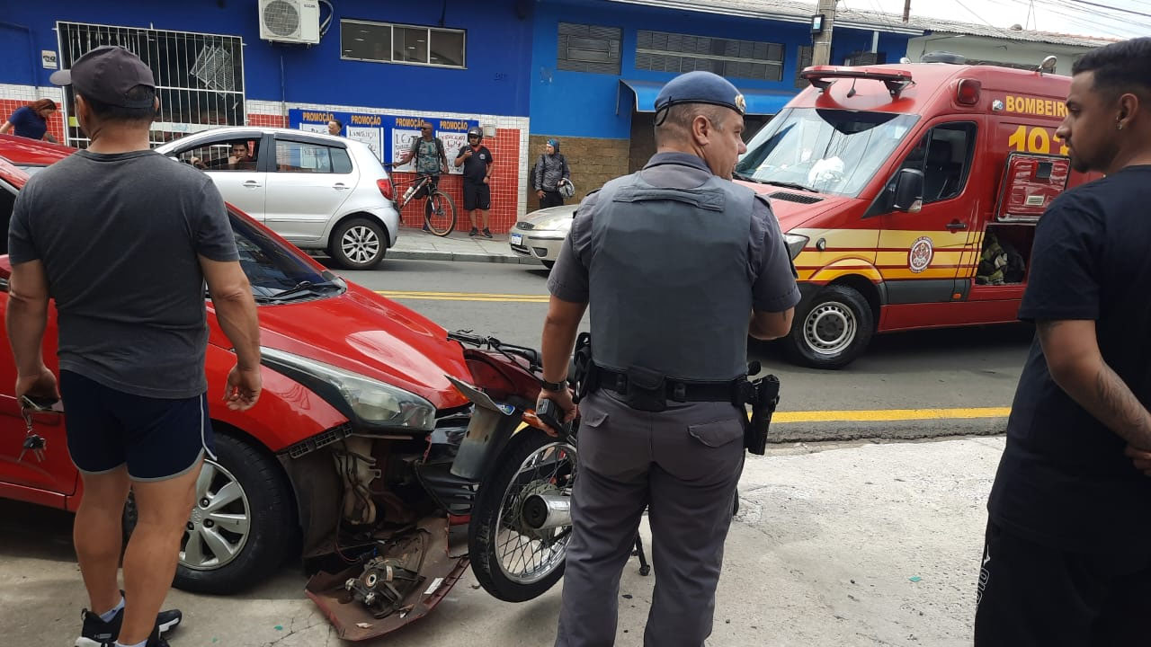 De acordo com informações preliminares, ocorreu um acidente de trânsito envolvendo uma moto e um carro. Ambos os condutores passaram a discutir. O motoqueiro desferiu um golpe de faca na perna do rapaz do carro e também desferiu golpes de martelo. A PM e o socorro foram acionados e socorreram o ferido. O motoqueiro fugiu e a moto ficou no local. Mais detalhes assim que possível.
