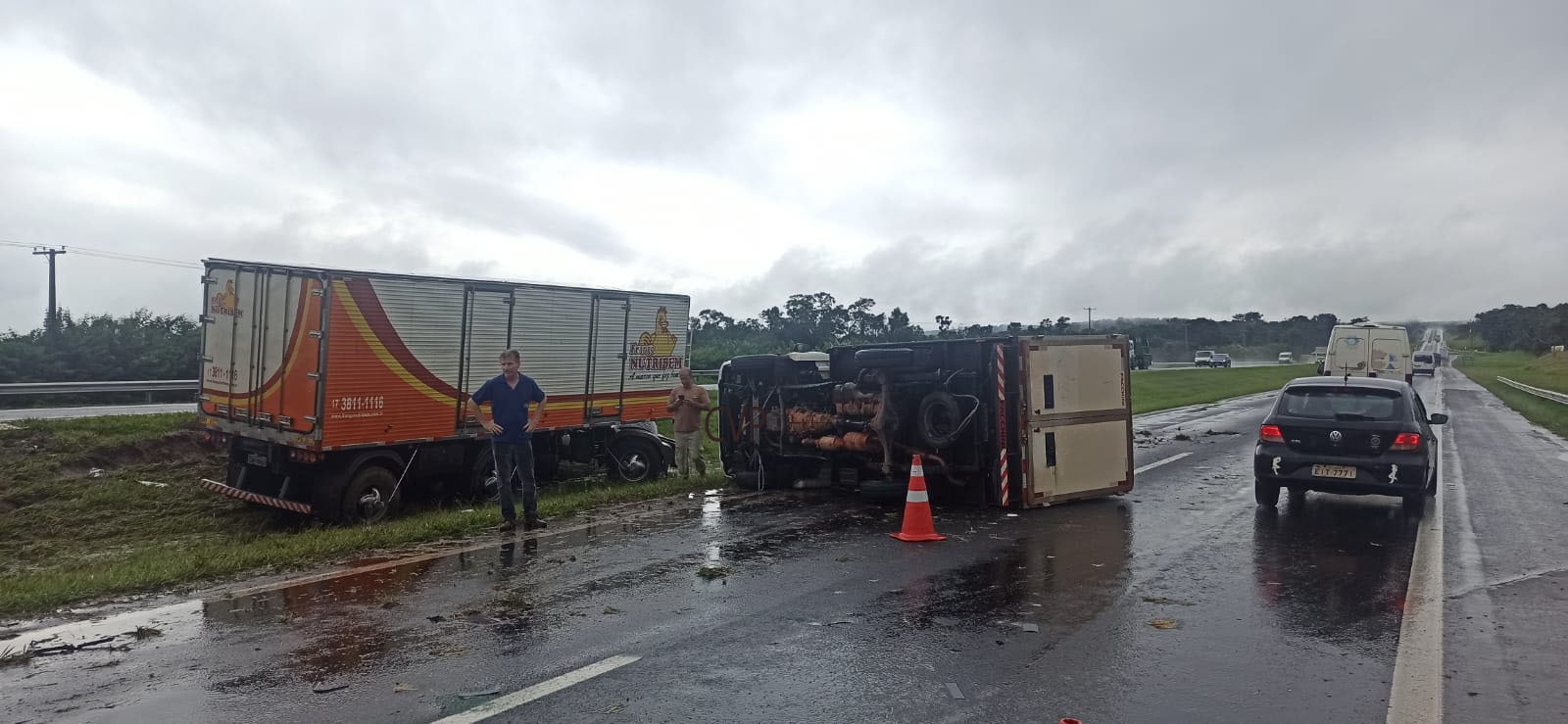 De acordo com informações, um veículo HB20, ocupado por duas pessoas, teria atravessado o canteiro central da rodovia e capotado. Dois caminhões que transitavam no sentido contrário, acabaram freando, um tombou e o outro fez “um L”. Os ocupantes dos caminhões nada sofreram, mas os dois ocupantes do HB20, foram socorridos pelo Corpo de Bombeiros e Concessionária Eixo. Ambos foram encaminhados para a Santa Casa de São Carlos. A Polícia Militar Rodoviária esteve no local e tomou as medidas cabíveis.