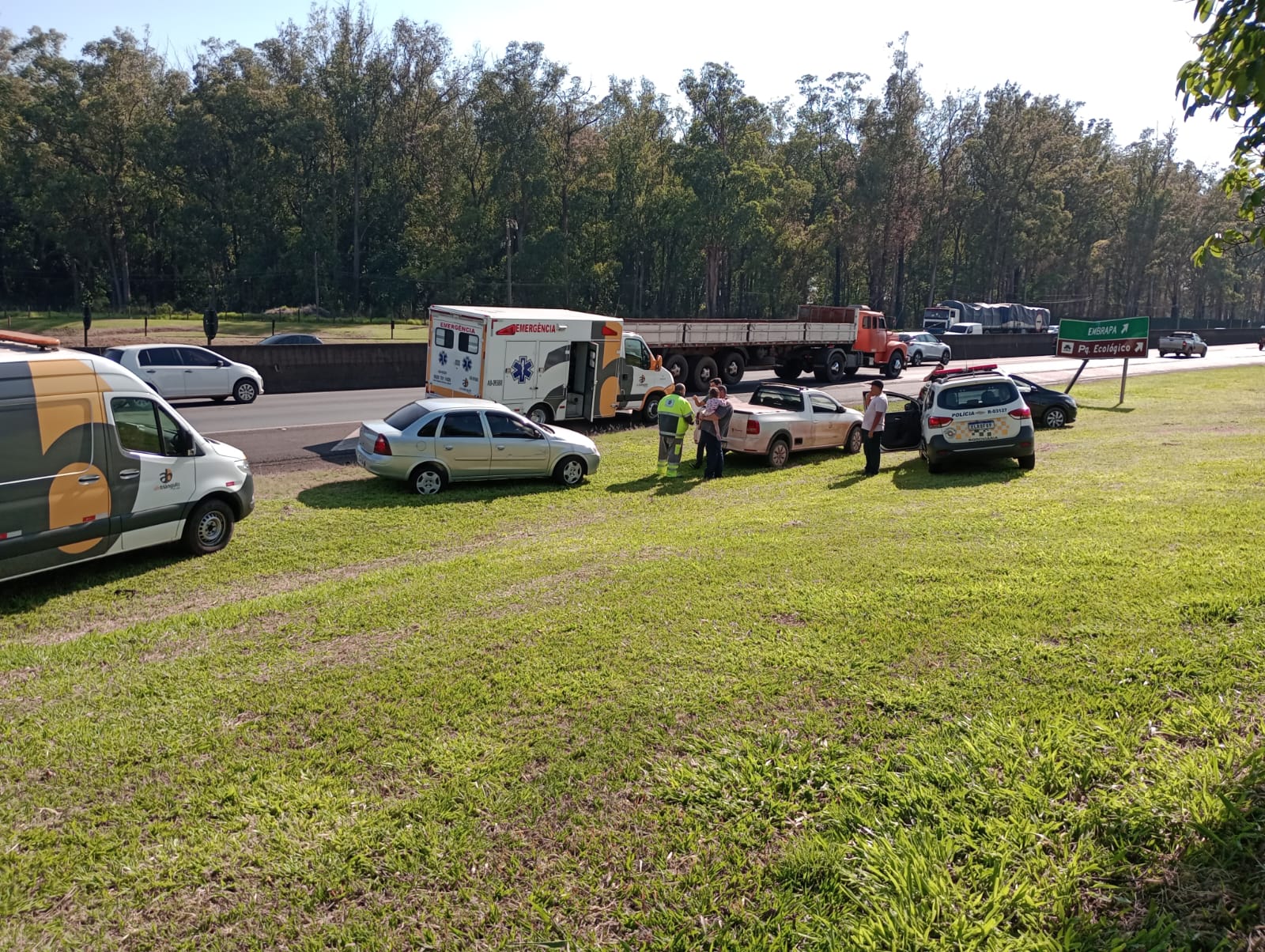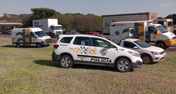 Segundo informações, a vítima de 29 anos, conduzia uma moto no sentido interior/capital, ao tentar fazer uma ultrapassagem, colidiu em um veículo Corsa e posteriormente em um veículo  Saveiro. A condutora da moto foi ao solo e sofreu uma  lesão no joelho. O resgate da concessionária que administra a  rodovia foi acionada e socorreu a mulher para a Santa Casa de São Carlos. A Polícia Rodoviária esteve presente e  efetuou os procedimentos cabíveis.