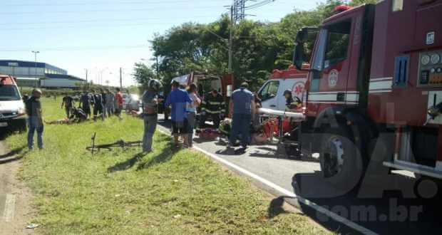Segundo informações, um ciclista de 34 anos tentou atravessar a Manoel de Abreu e foi atingido violentamente por uma moto, com dois ocupantes. As três vítimas foram arremessadas ao chão.