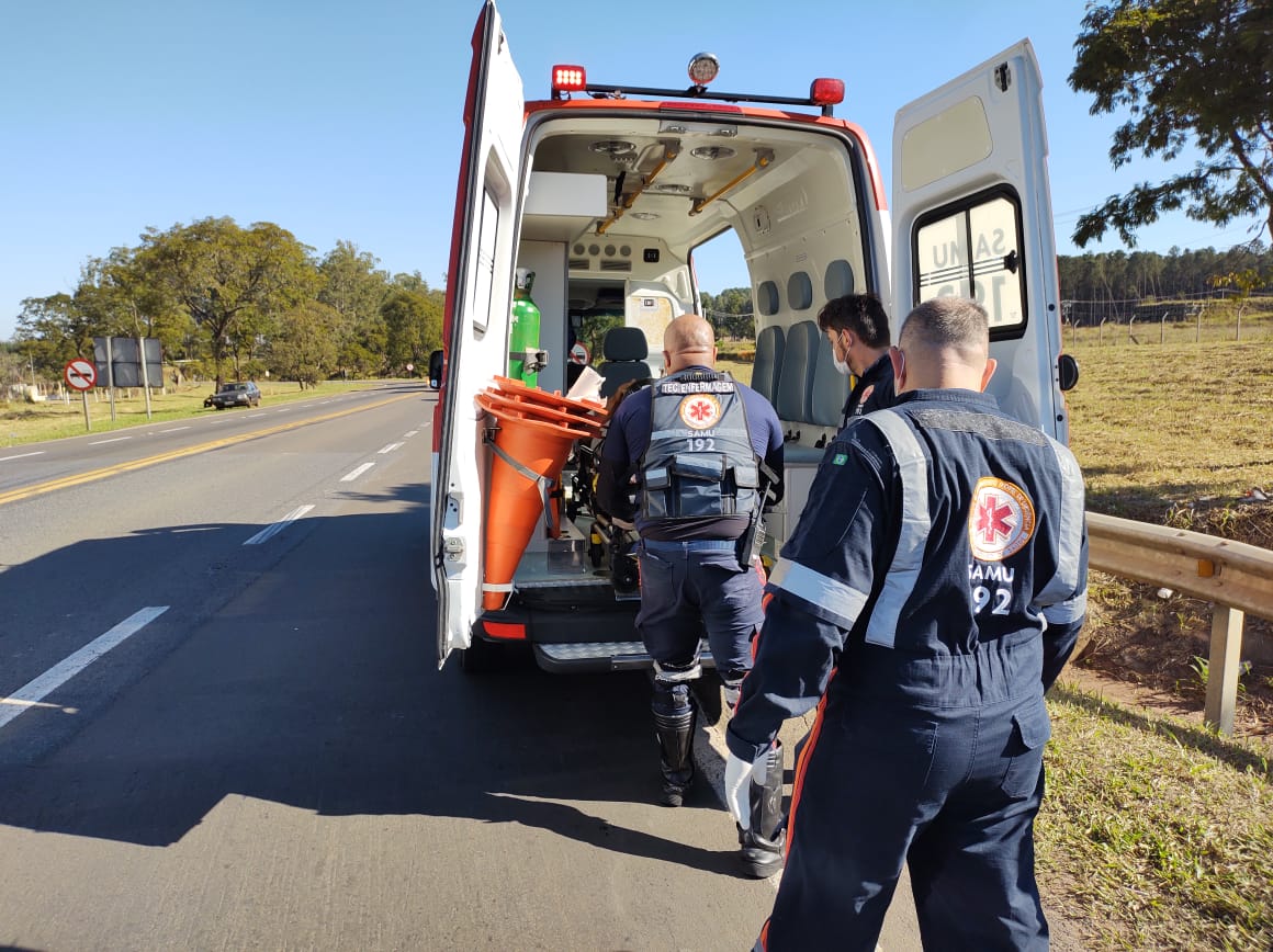 Um jovem de 23 anos ficou ferido nesta tarde de segunda-feira, 14 de junho de 2021, em um acidente de trânsito na alça de acesso da SP-215, São Carlos-SP.