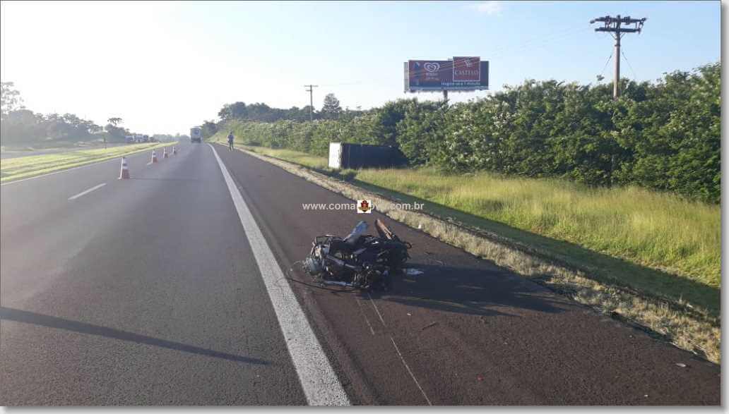 Segundo informações, uma moto Honda Bis, placa de São Carlos,  transitava no sentido São Carlos/capital, por motivos desconhecidos, foi atingida pelo caminhão Mercedes Benz/ L da cor vermelha, placas de Guariba-SP.   O resgate foi acionado, mas o senhor que ainda não teve o nome revelado já estava sem vida. A Polícia Rodoviária esteve no local e acionou a Polícia Civil. O caminhão acabou tombando. O motorista do caminhão nada sofreu.