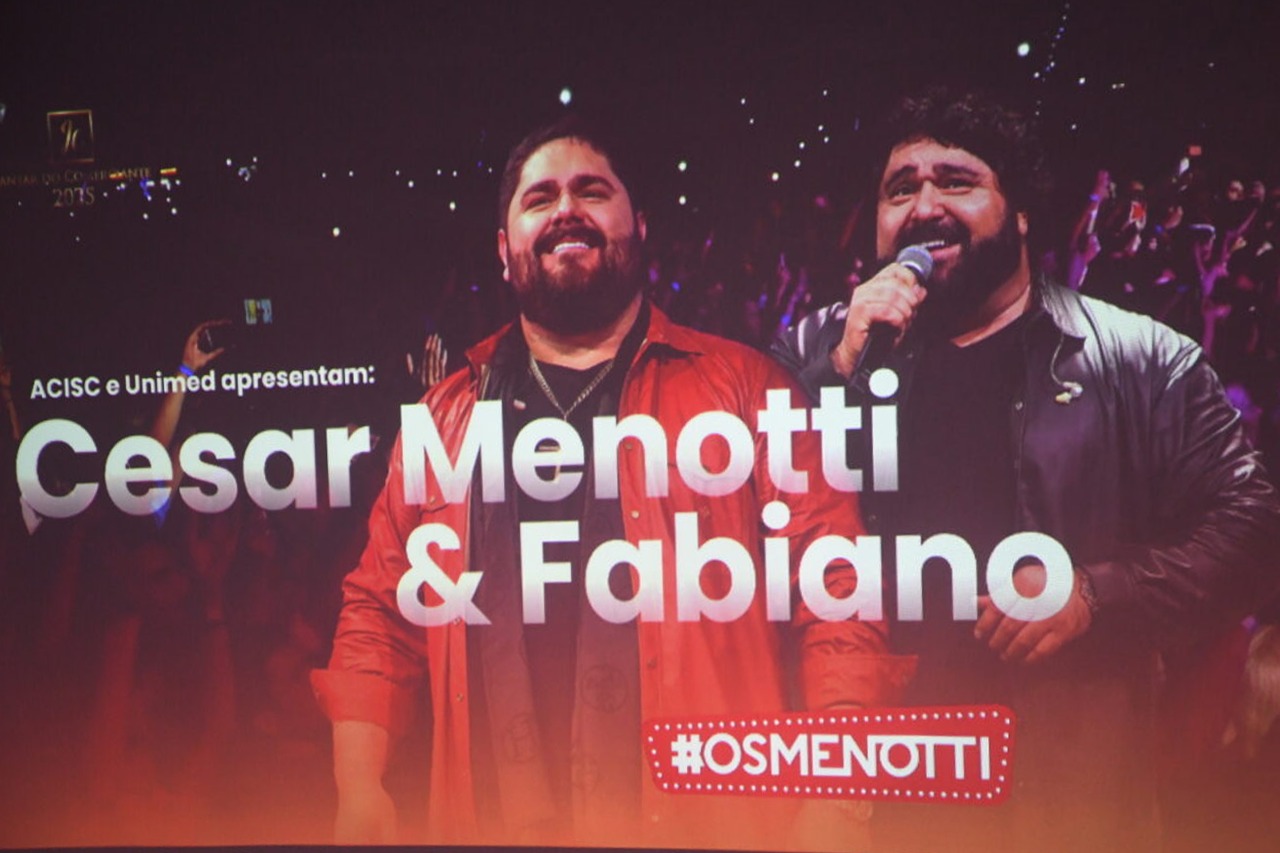 Durante o evento, César Menotti e Fabiano foram anunciados como atração principal do Jantar do Comerciante 2025
