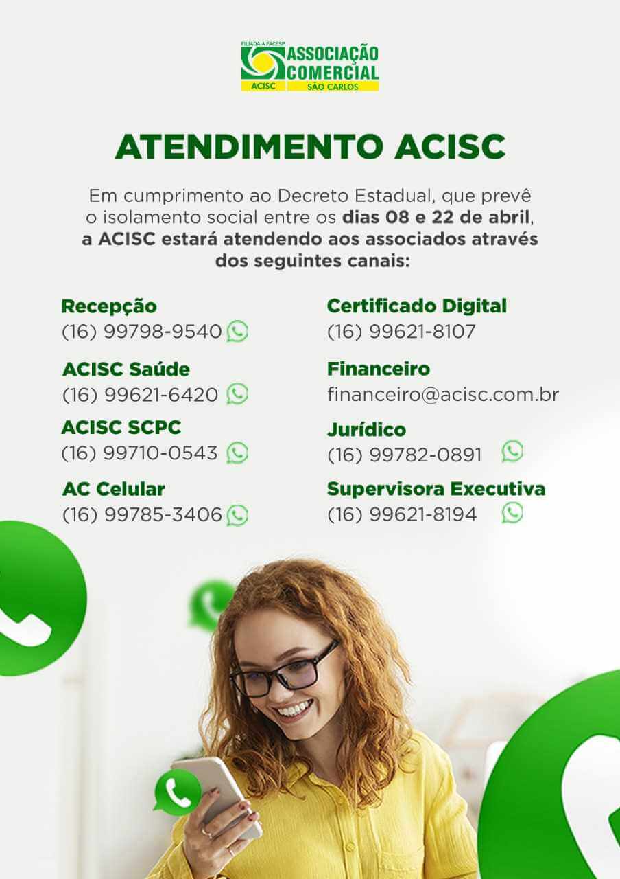 Diante dessa determinação de isolamento social, a ACISC está disponibilizando atendimento aos seus associados, através dos seguintes canais:
