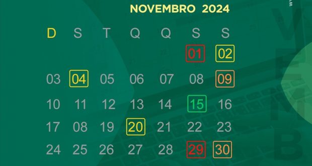 Dias 15 (feriado), 16 e 23 (sábados): das 9h às 13h;