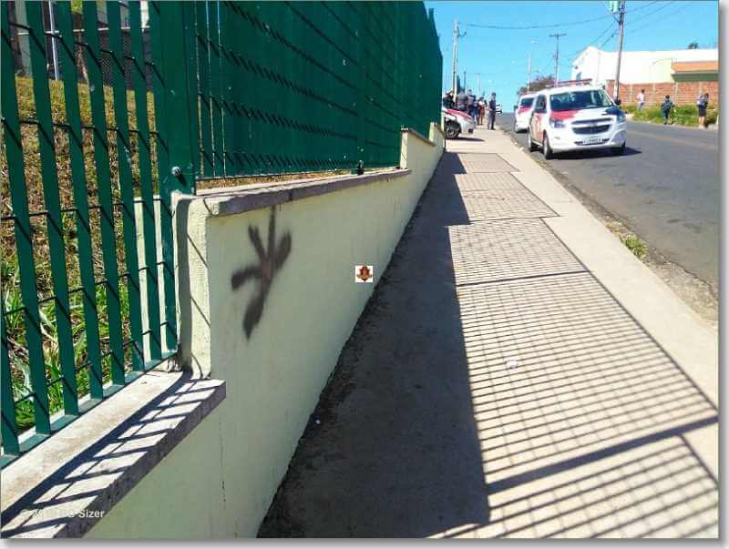 Um menor de idade foi detido pela PM e proferiu diversas ameaças contra os policiais ao ser flagrado desenhando uma folha de maconha no muro de uma escola situada na rua Reinaldo Pizani, bairro Cidade Aracy, São Carlos-SP.