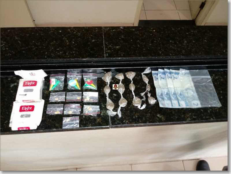 Um menor de 17 anos foi detido pela PM no início da tarde deste sábado, 31-03-2018, com drogas na rua Maria Tertolina dos Santos, bairro Cidade Aracy, São Carlos-SP.