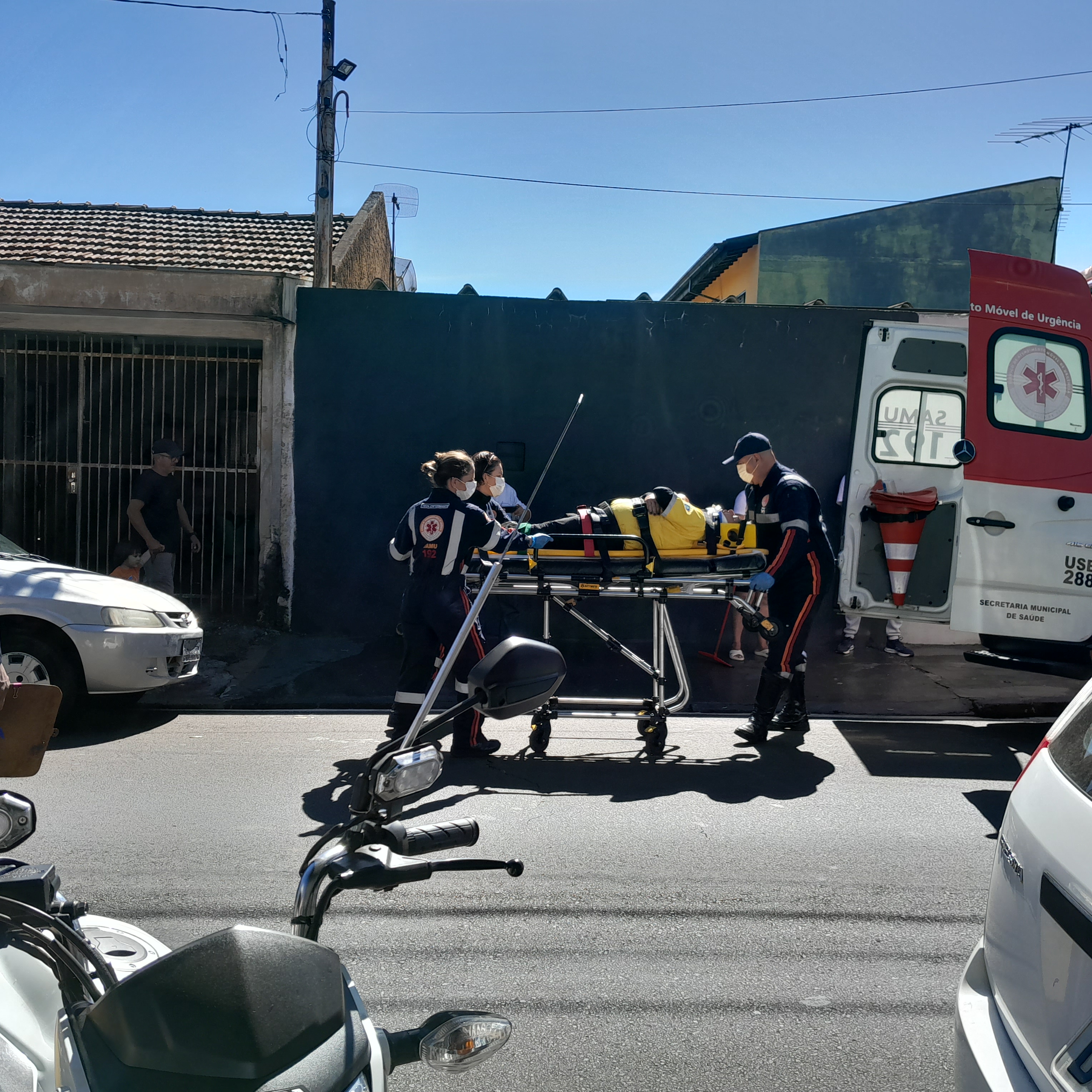De acordo com informações, um homem motorista de aplicativo, transitava pela referida rua, no mesmo sentido transitava a agente de trânsito com a moto CB300, pertencente a Prefeitura Municipal (Agente de Trânsito). O motorista teria parado devido o transito estar lento, o passageiro foi descer do Sandero, a agente de transito, a qual estaria pela direita, teria se assustado e caído com a moto. O SAMU foi acionado e socorreu a vítima de 49 anos para a Santa Casa de São Carlos. De acordo com a equipe do SAMU, a mulher estaria com suspeita de fratura na perna e também com dor na mão. A GM esteve no local e tomou as medidas cabíveis.