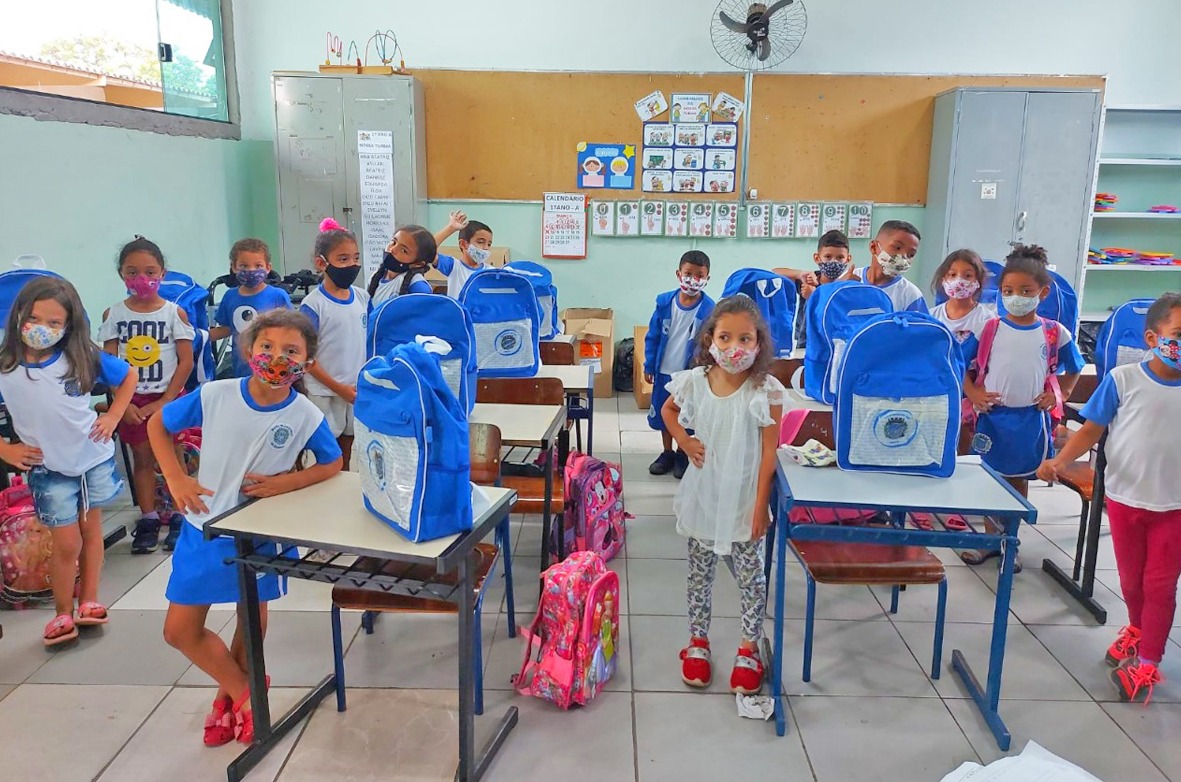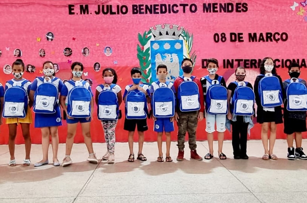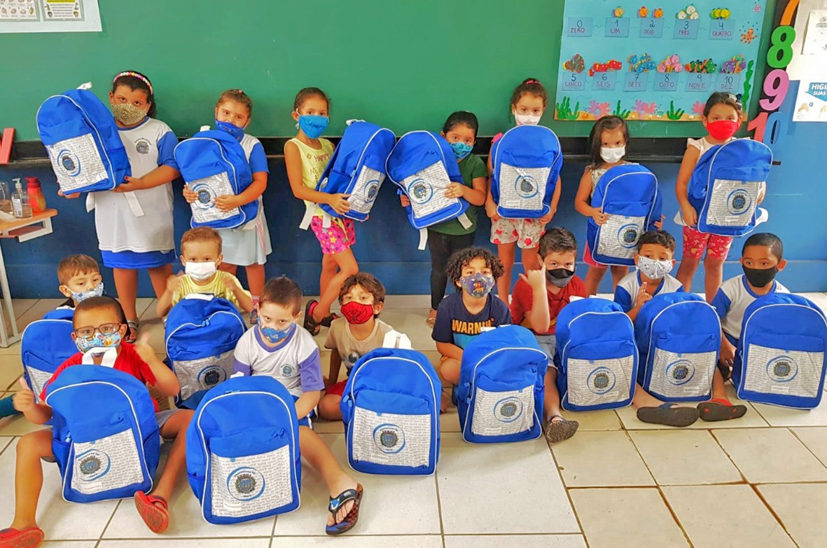 Cada aluno recebeu um kit contendo: uma mochila; um par de tênis [ou papete no caso das crianças matriculadas no Ensino Infantil]; duas camisetas; um short saia [para as meninas] e/ou um shorts [para os meninos].