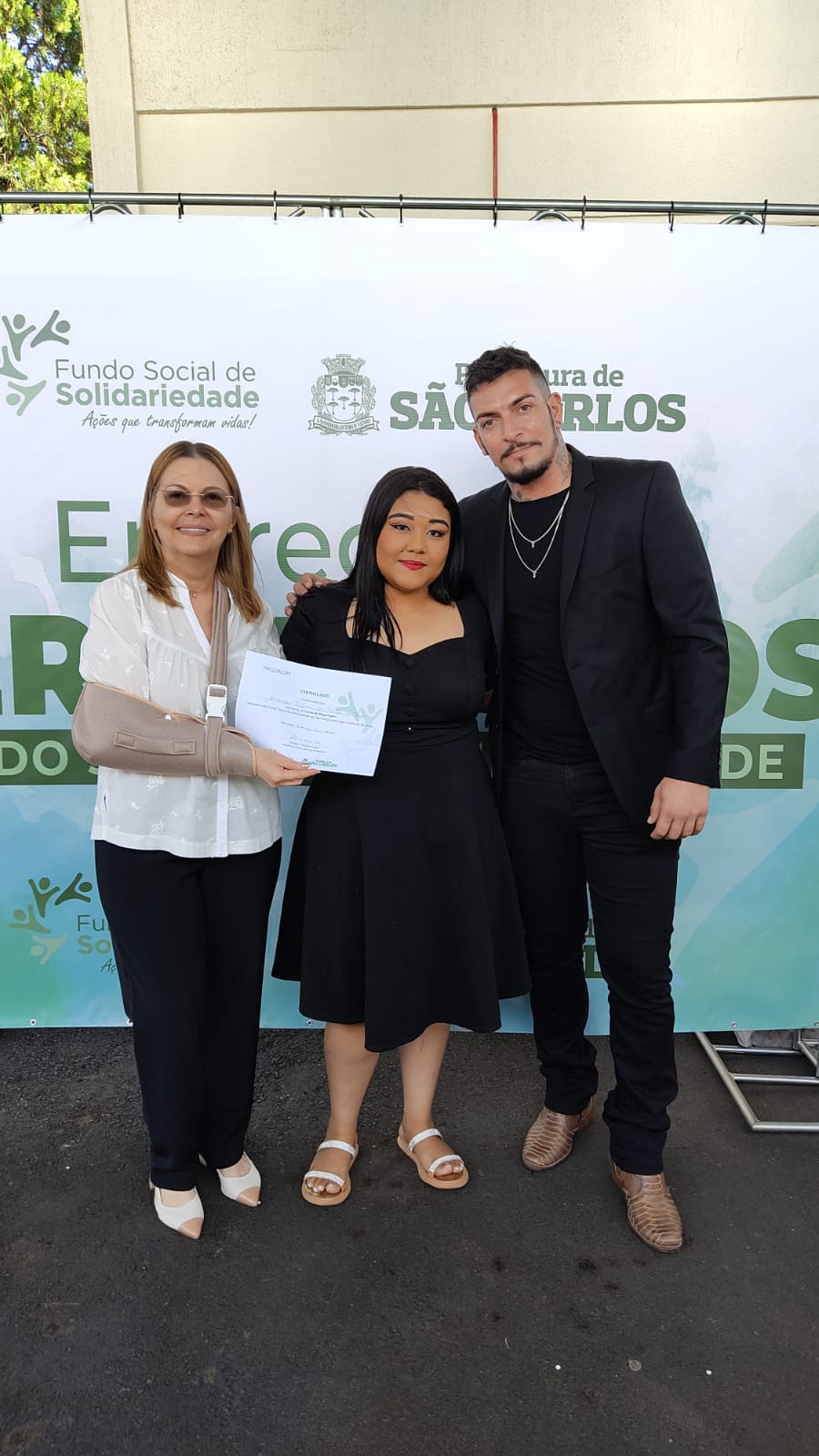 A primeira-dama e presidente do Fundo Social de Solidariedade, Rosária Mazzini, salienta a felicidade de poder entregar esses certificados para os alunos dos vários cursos ofertados, além da possibilidade de levar esses cursos para diferentes bairros da cidade. “Os cursos abrem as portas para o mercado de trabalho e a pessoa se torna independente com renda própria e aumenta a autoestima. Logo no primeiro ano da gestão do prefeito Airton Garcia, nós fizemos uma reforma na Casa Amarela, em Santa Eudóxia, que estava abandonada, e realizamos um sonho com essa casa, que hoje está maravilhosa, onde nós administramos vários tipos de cursos e facilitamos a qualificação das pessoas que moram no distrito. Temos também cursos aqui no Fundo Social, um prédio que também foi reformado na primeira gestão do Airton, e, por fim, no Centro da Juventude “Elaine Viviani”, que sempre oferece vários cursos para a população”, finaliza a primeira-dama, que destacou que alguns alunos dos cursos de alongamento de unhas em acrílico e de maquiagem não puderam estar presentes na entrega de certificados por já estarem com clientes agendados no horário.