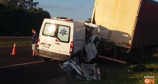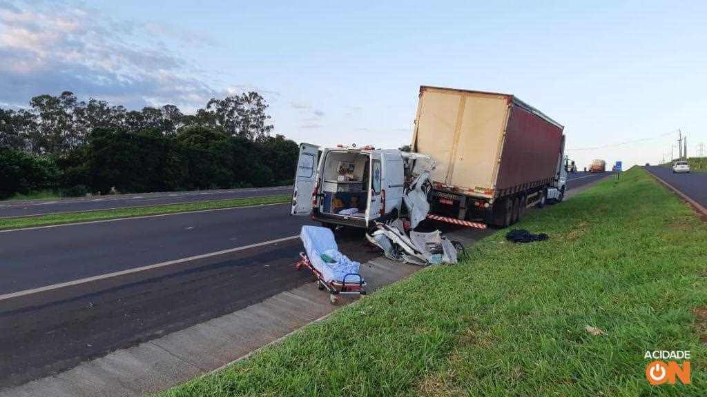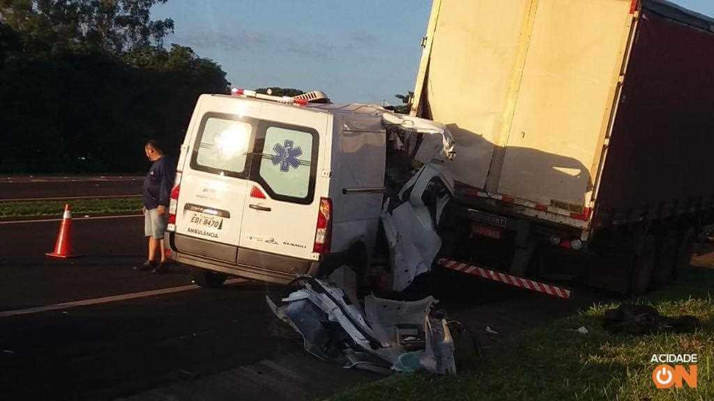 Uma ambulância colidiu na traseira de um caminhão na madrugada desta segunda-feira (9), na rodovia Alexandre Balbo, Anel Viário Norte em Ribeirão Preto. Duas pessoas morreram e três ficaram feridas.