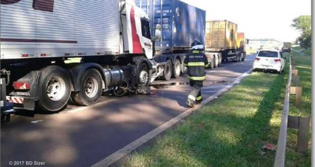 Segundo informações de um dos motoristas, um caminhão bateu na traseira do outro. O segundo motorista acabou ficando preso nas ferragens e precisou ser resgatado pelo Corpo de Bombeiros. Ele foi socorrido consciente e encaminhado ao hospital.