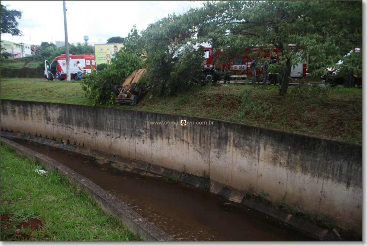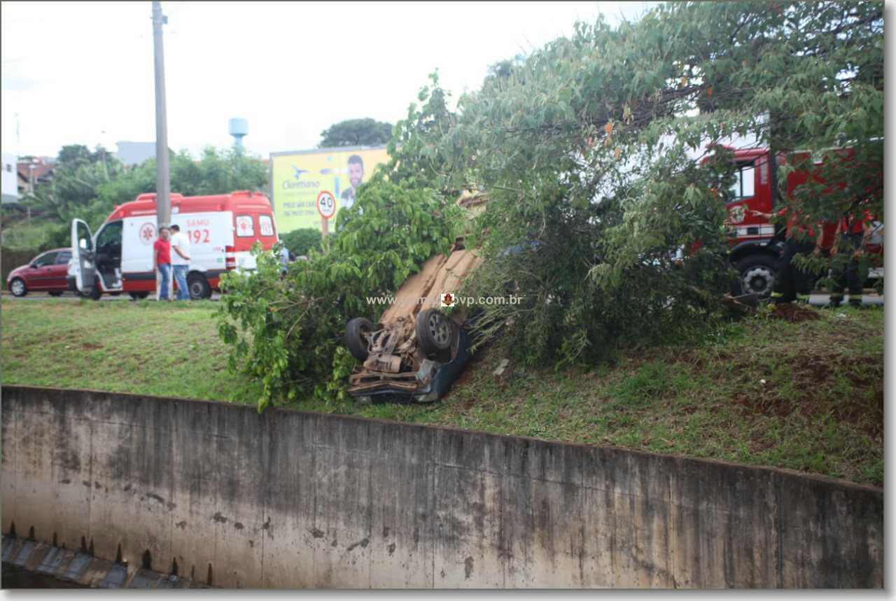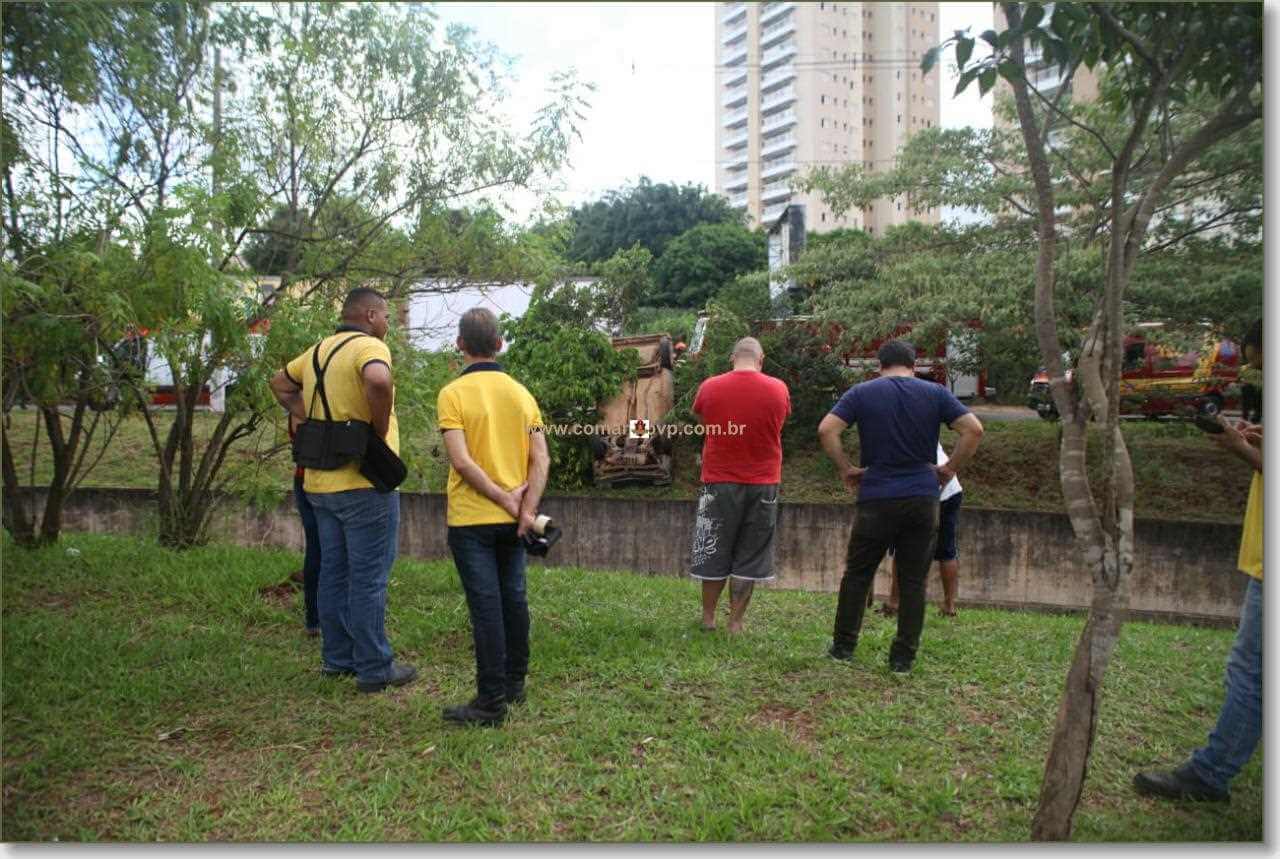 Um homem colidiu contra uma árvore nesta tarde de terça-feira, 4 de fevereiro de 2020, na Avenida Comendador Alfredo Maffei, região do bairro Vila Nery, São Carlos-SP e por sorte não acabou dentro do córrego.