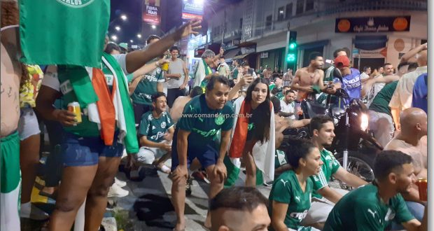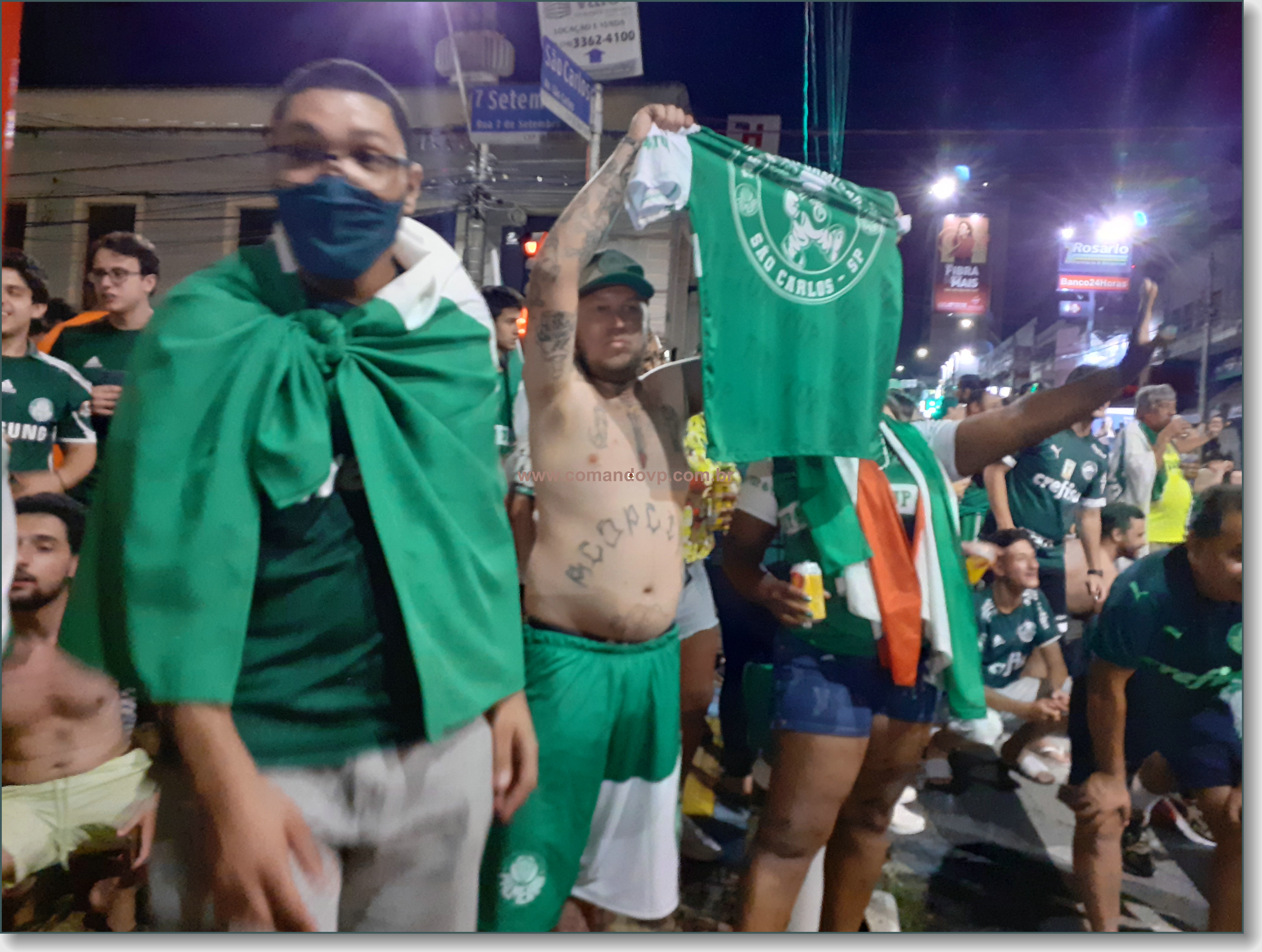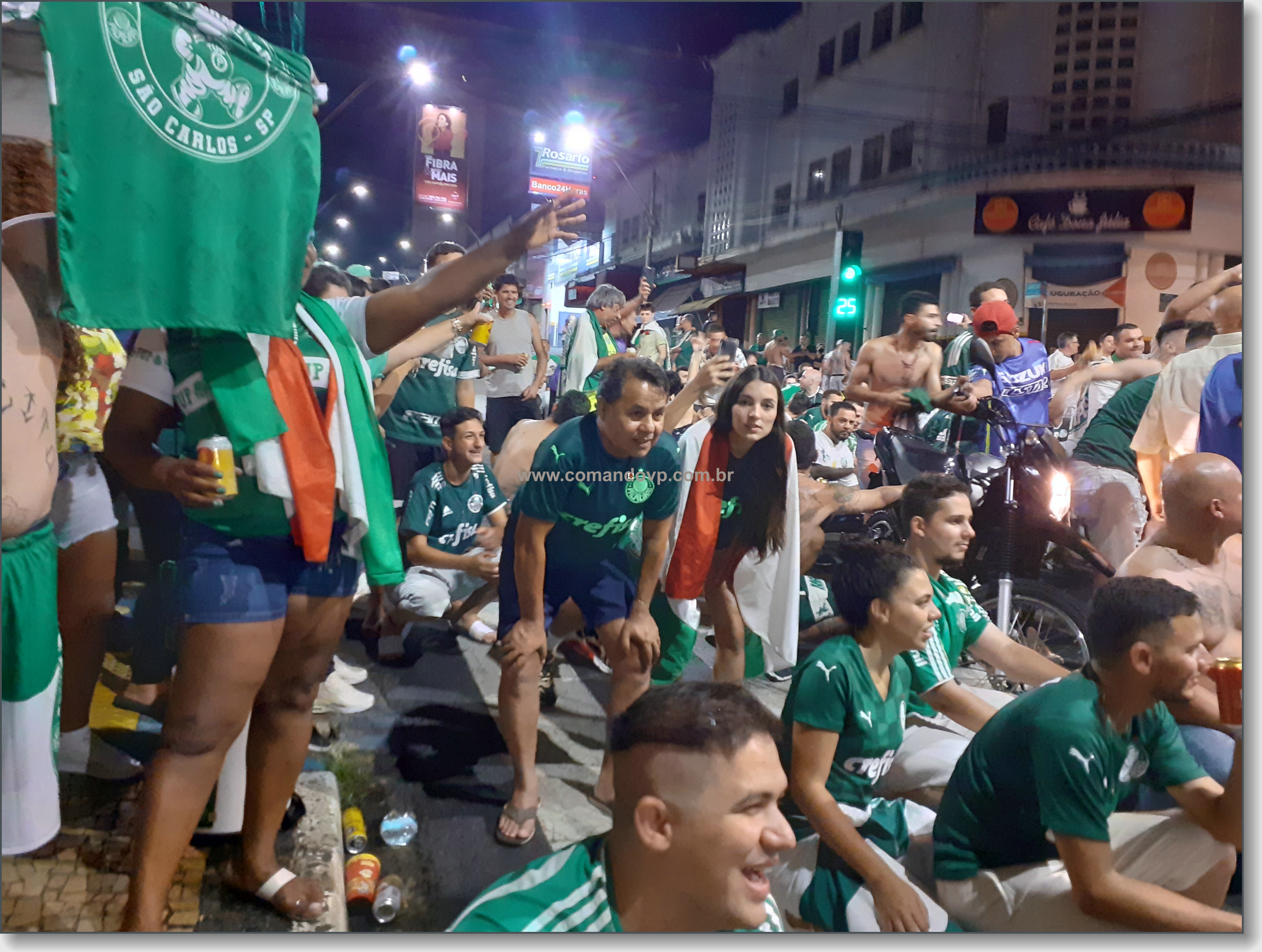 Os palmeirenses foram comemorar a vitória no Centro de São Carlos.