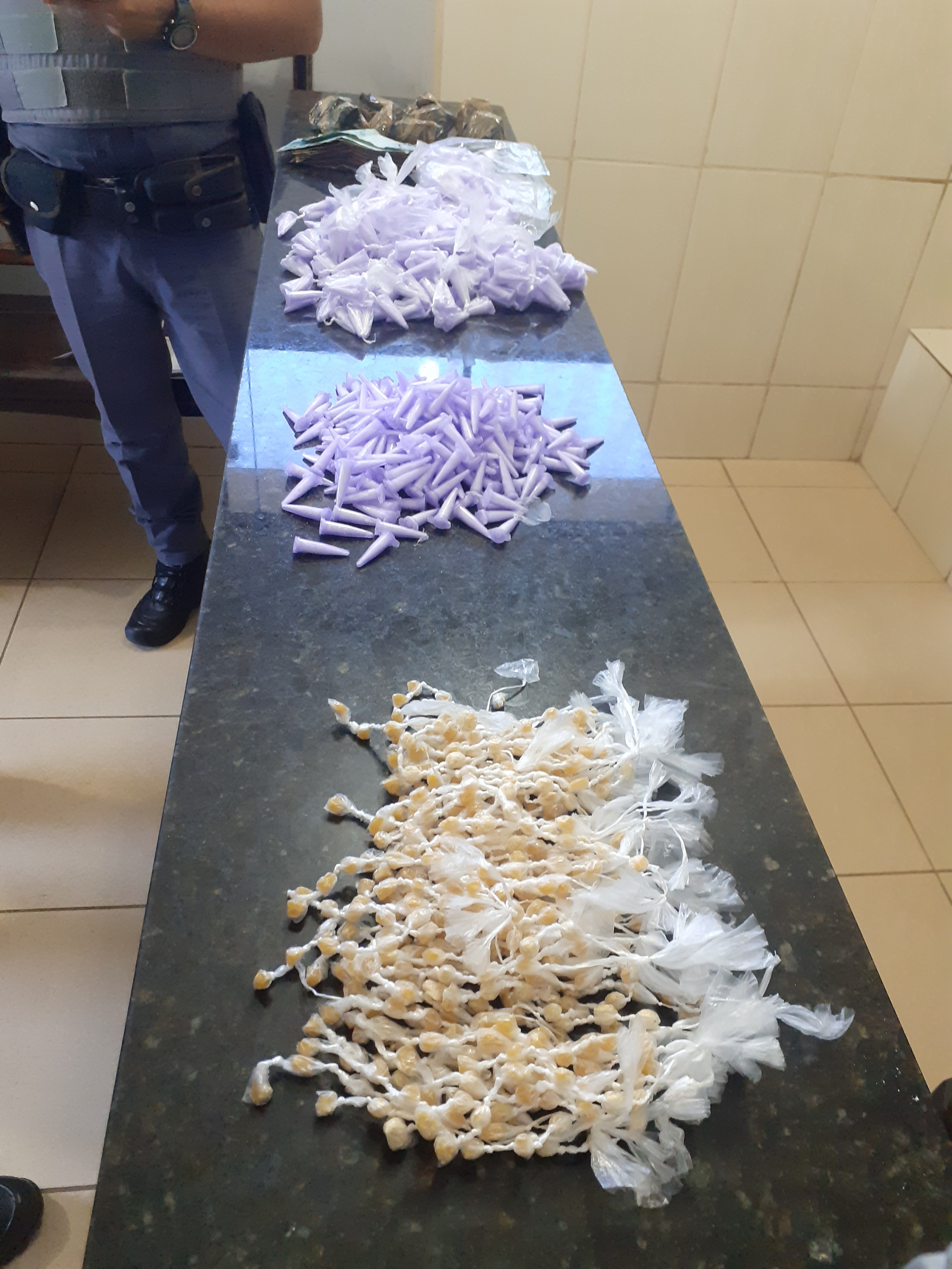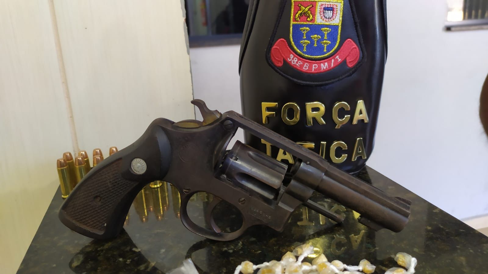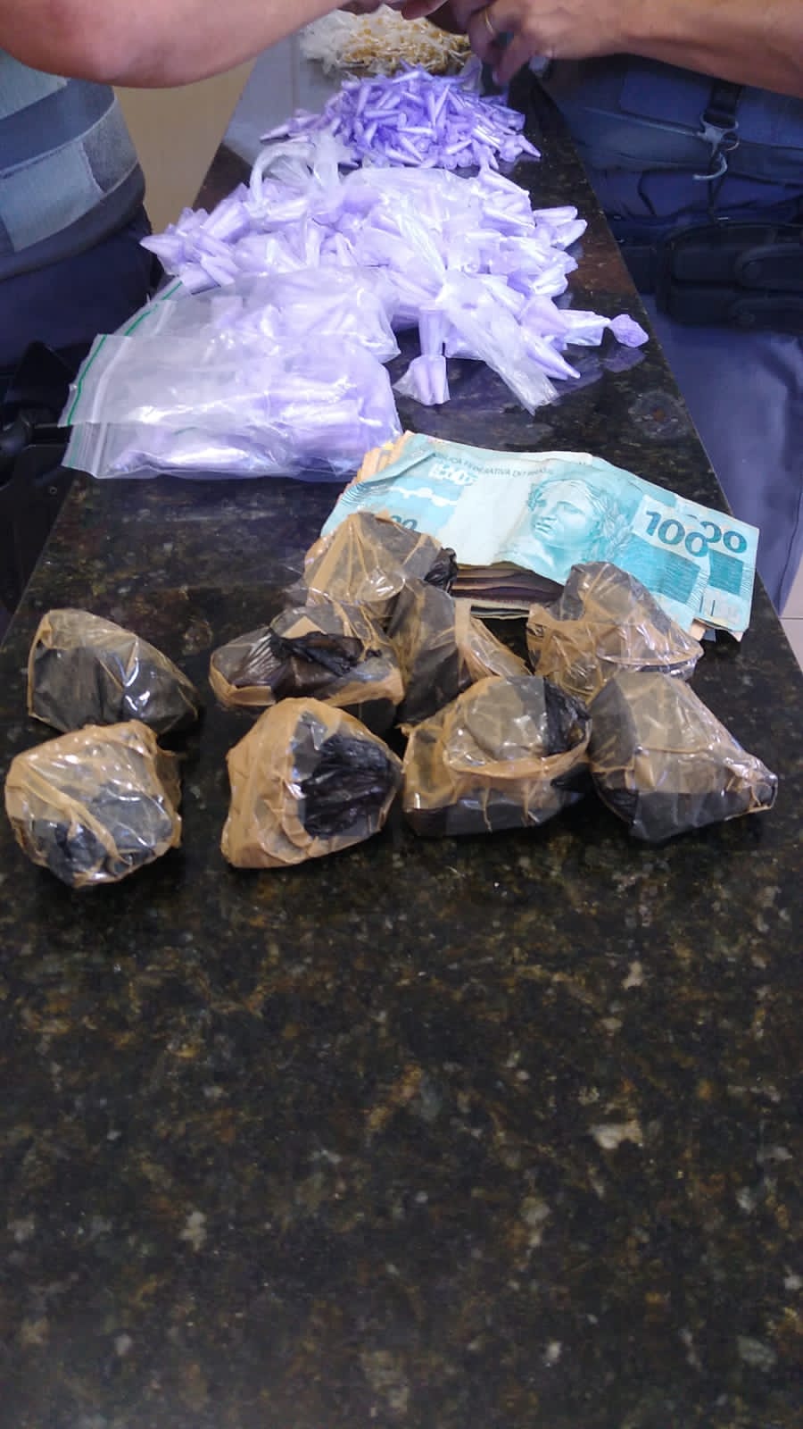 De acordo com informações, uma equipe da Força Tática estava em patrulhamento pela região do Bangu, quando avistou o menor saído de uma casa. Este ao se deparar com a viatura ficou nervoso e foi abordado. Em revista pessoal foi encontrada um pouco de droga. O mesmo acabou confessando que é traficante e que na sua casa tinha mais droga e uma arma de fogo. Os tiveram a entrada franqueada no imóvel e apreenderam 9 pedras grandes de crack, 504 pedras pequenas prontas para a venda, R$ 1.179,00, 761 pinos de cocaína e um revólver calibre 38. O menor assumiu que as drogas e a arma de fogo eram suas. O mesmo foi encaminhado à Central de Polícia Judiciária, onde ficou à disposição da família. De acordo com a PM, o jovem mora com o pai, o qual já ficou alguns anos preso. O pai disse que não tinha conhecimento que o filho guardava drogas dentro de casa. A arma de fogo ele disse que devido estar sendo ameaçado, havia comprado a mesma e pagado três mil e quinhentos reais.