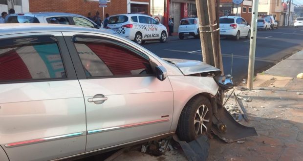 Um acidente na manhã desta sexta-feira (12), deixou um poste danificado na rua São Bento, no Centro de Araraquara.