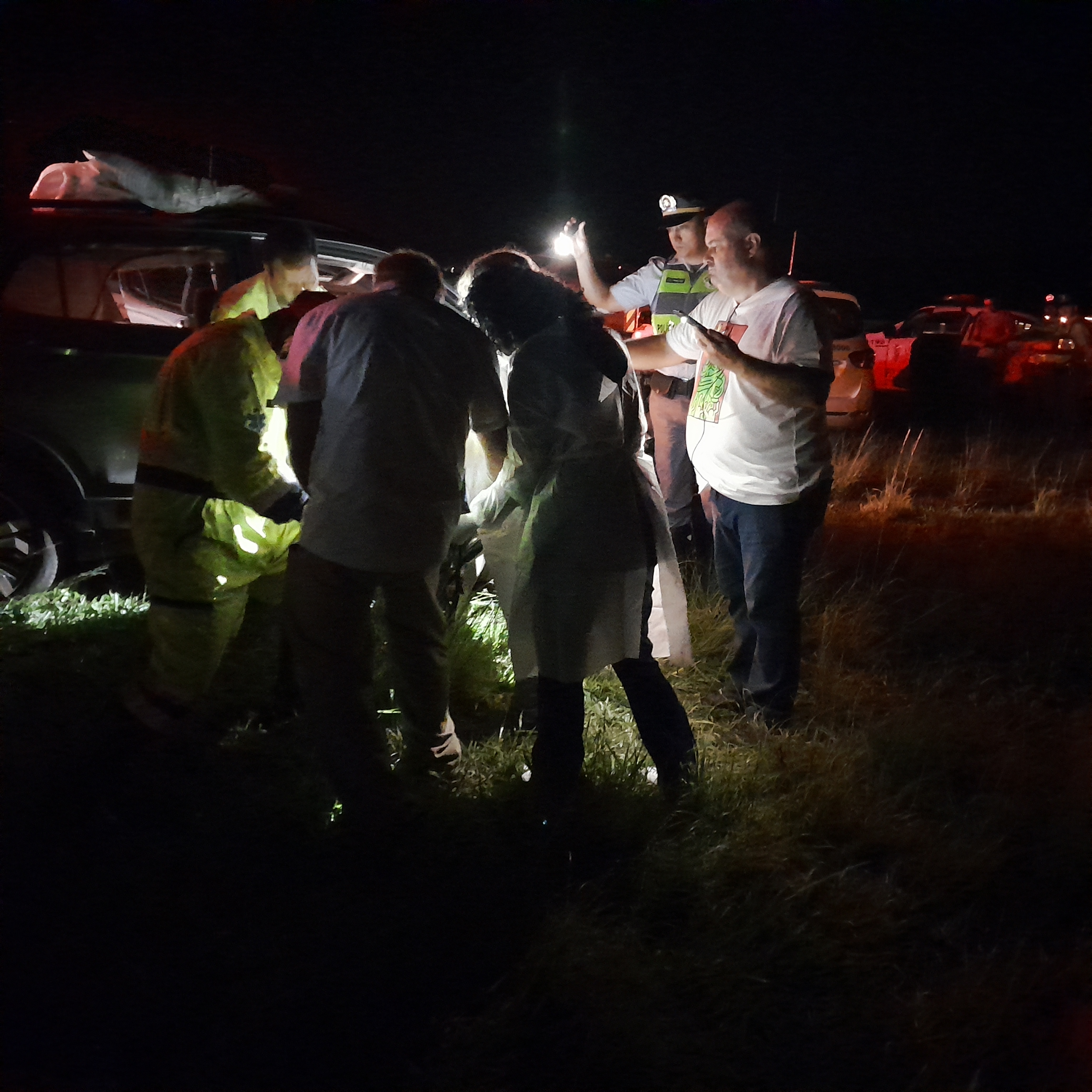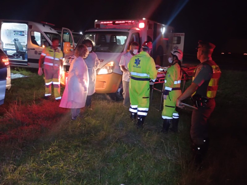 Segundo consta, no momento do acidente, dois policiais da Polícia Rodoviária, sendo um tenente de 43 anos e um cabo de 29, estavam no local prestando apoio a um motociclista, quando acabaram sendo atropelados pelos carros. O veículo Tiguan quando viu os policiais sinalizando o local, teria diminuído a velocidade e adentrado bruscamente na frente da Discovery, sendo assim a empresária de 59 anos, não conseguiu evitar a colisão e ocorreu o acidente. O cabo sofreu fratura na clavícula e o tente ficou levemente ferido. Ambos foram socorridos para a Santa Casa.