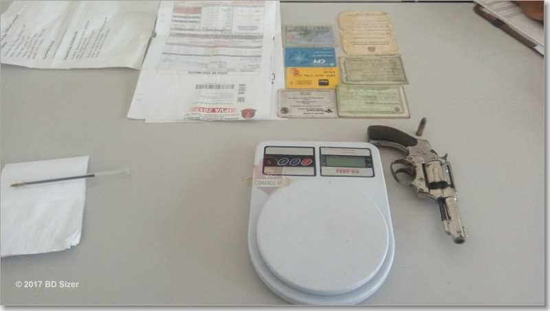 A Polícia Militar em diligencias após um roubo de uma carga de cigarros ocorrido na região do Castelo Branco nesta quarta-feira, 03-05-2017, apreendeu uma arma de fogo e uma balança de precisão em uma casa no bairro Presidente Collor, São Carlos-SP.