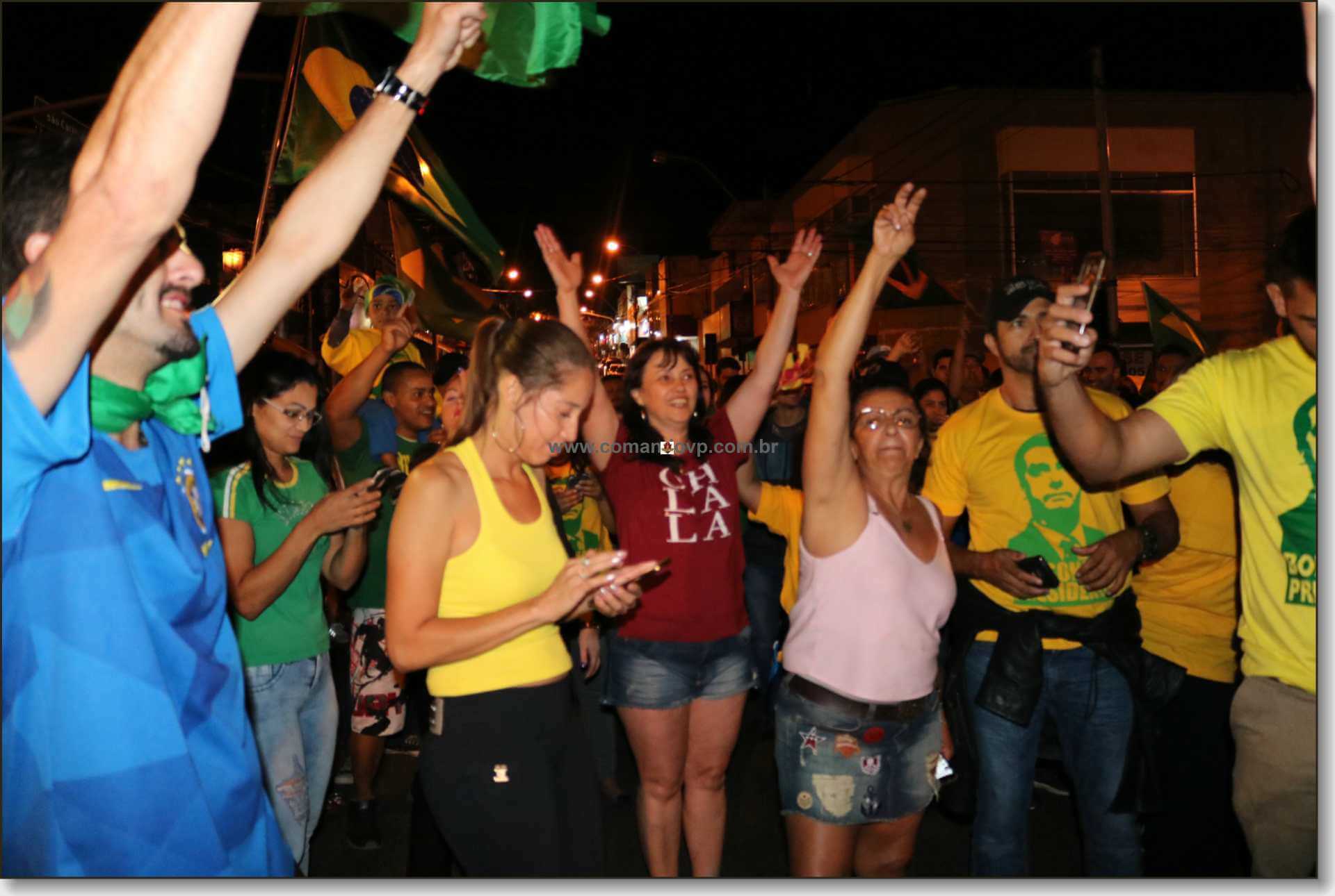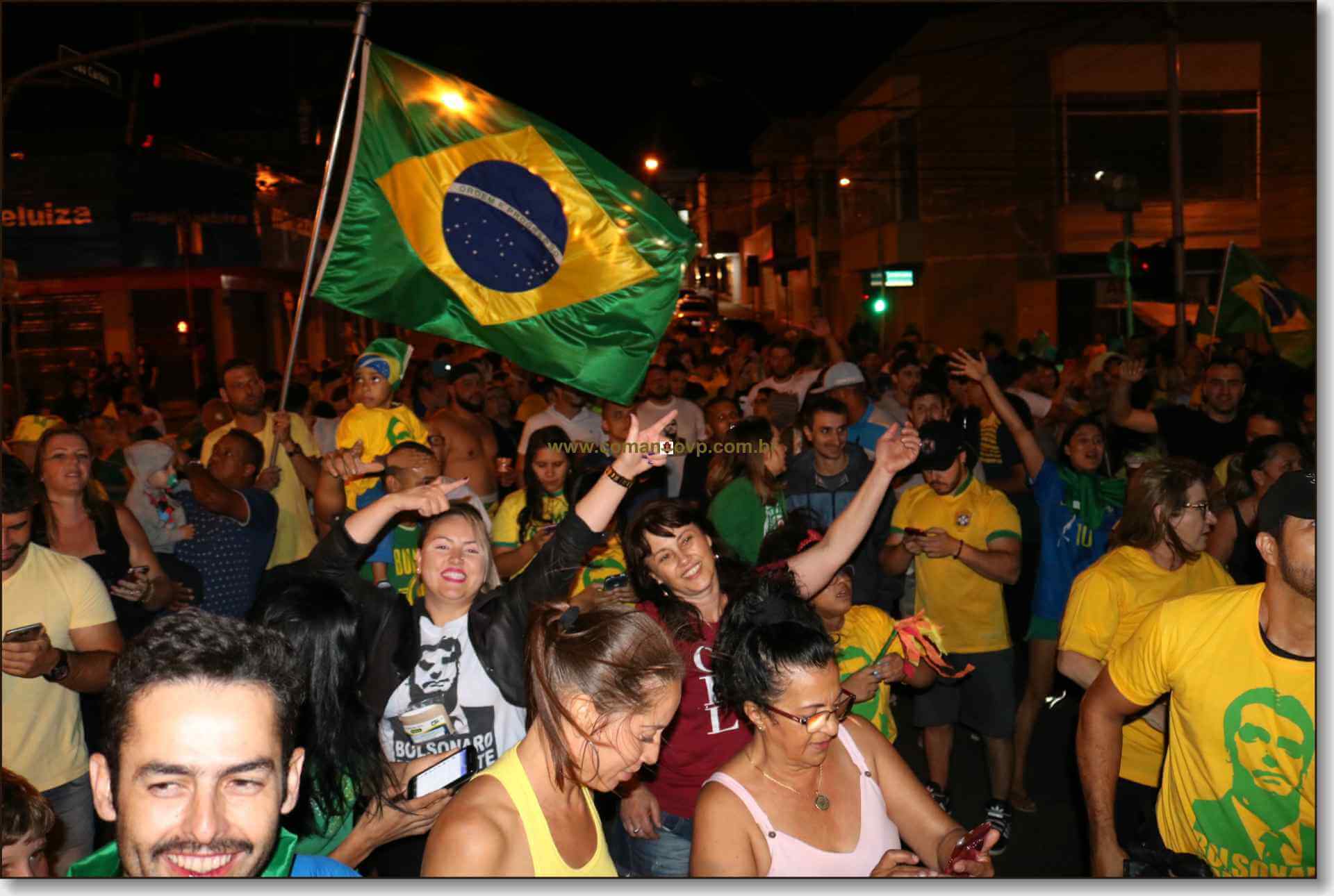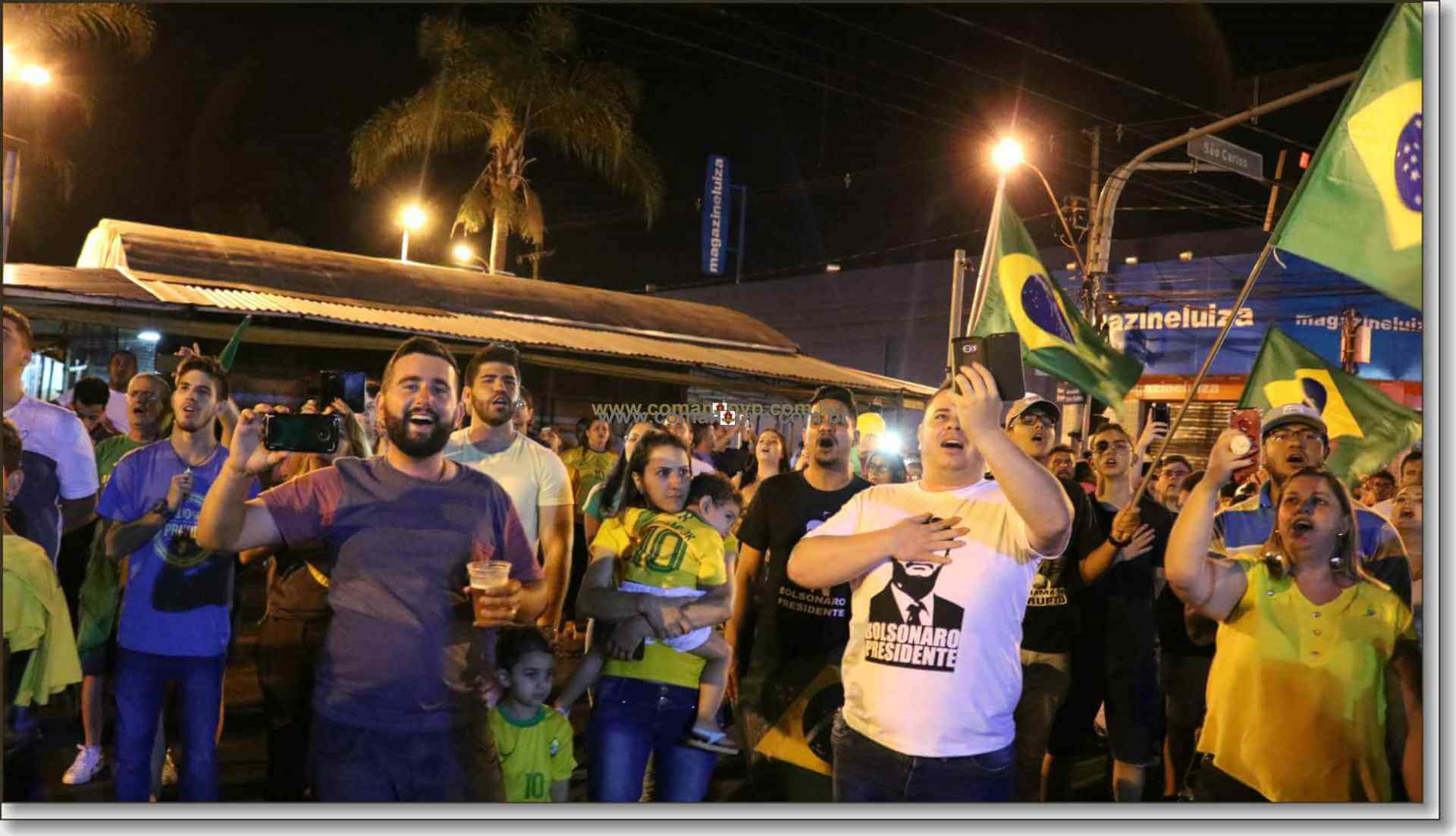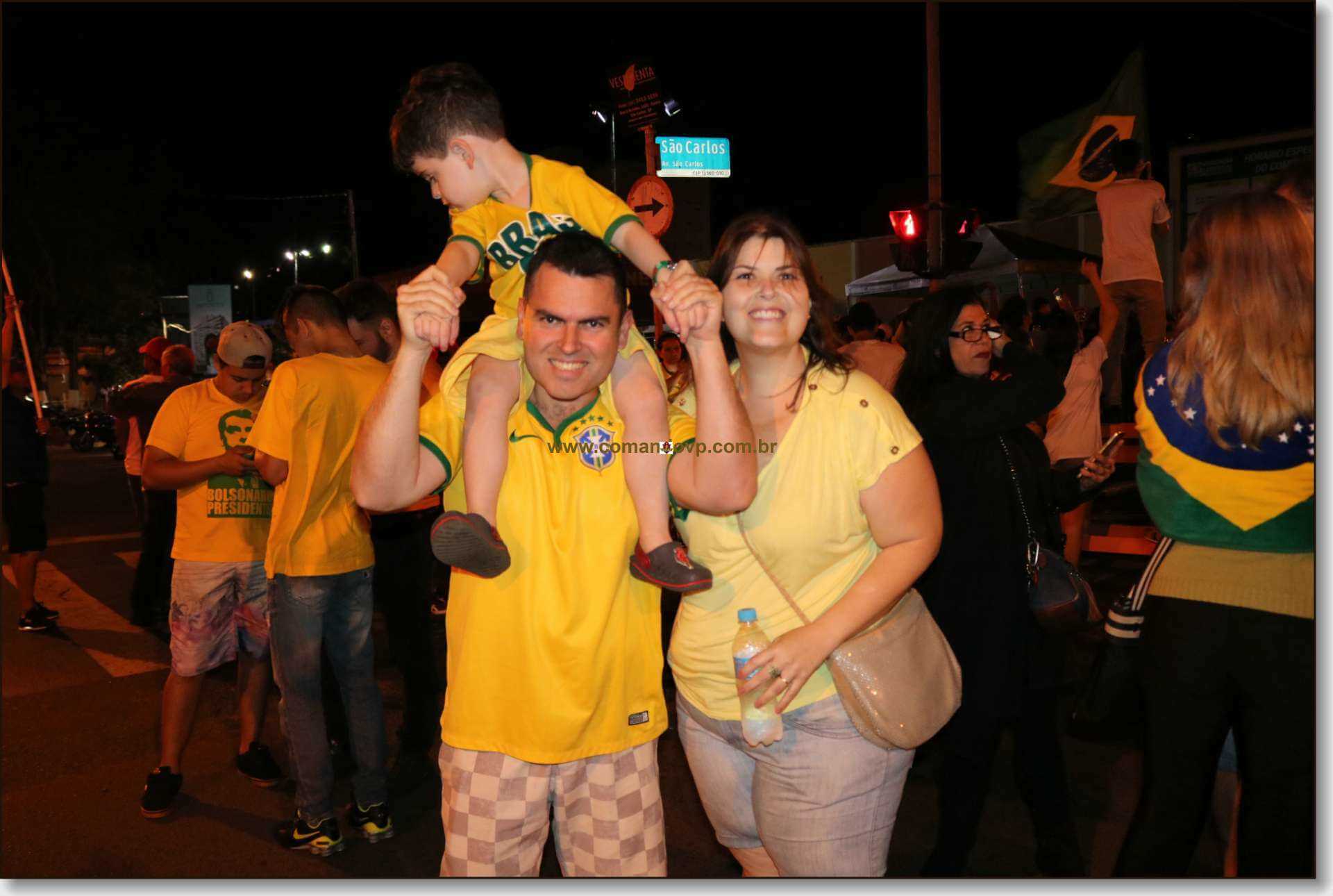 Após a vitória de Jair Bolsonaro, ocorrida neste domingo, 28 de outubro de 2018, as ruas de todo País ficaram coloridas de verde e amarelo. Em São Carlos-SP não poderia ser diferente.A Avenida Dr. Teixeira de Bairros e a Avenida São Carlos, região do mercadão foram invadidas por milhares de eleitores de Bolsonaro ( PSL), os quais acreditam estar contribuindo com uma grande mudança na democracia.