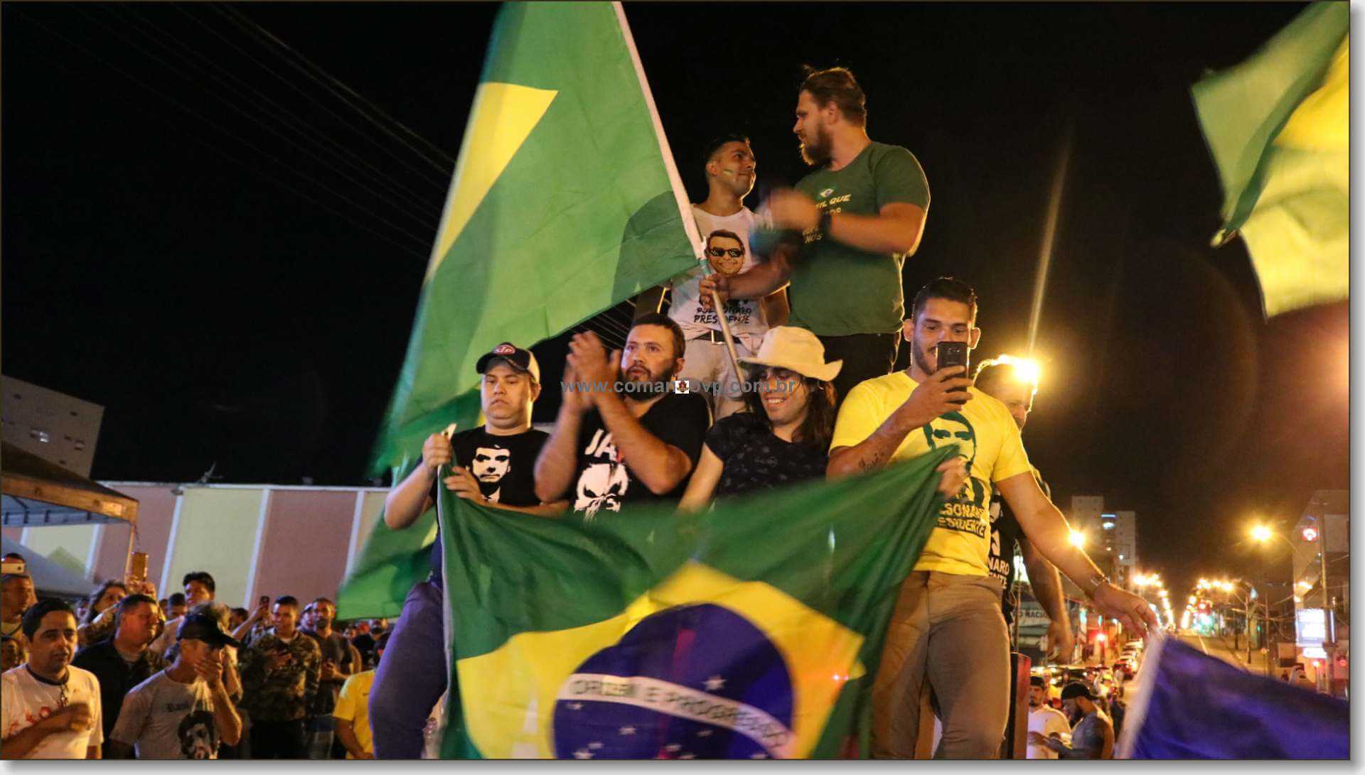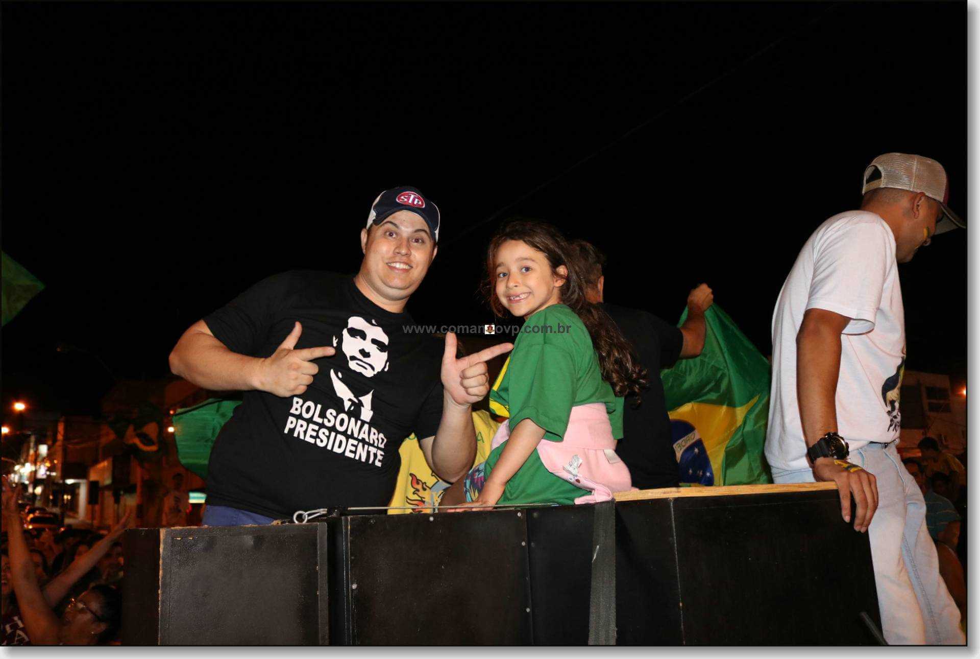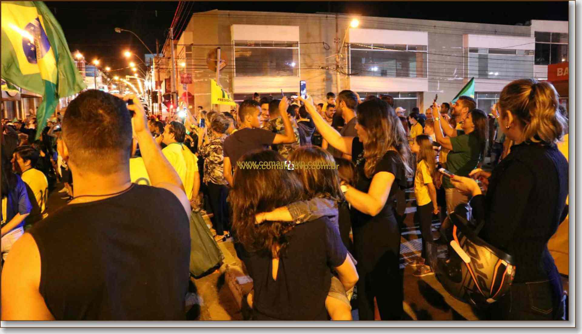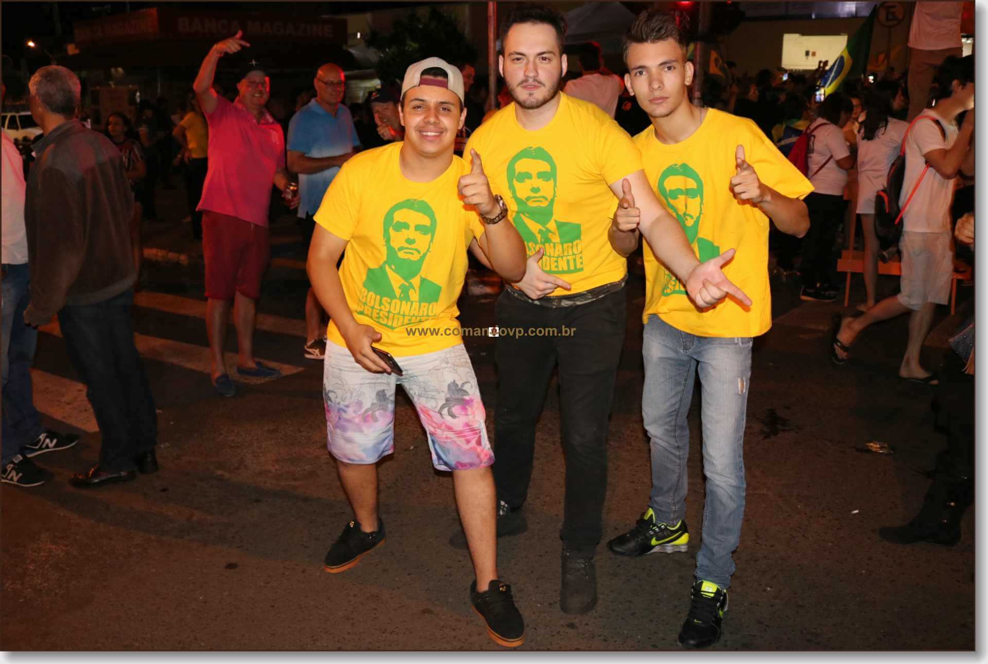 Após a vitória de Jair Bolsonaro, ocorrida neste domingo, 28 de outubro de 2018, as ruas de todo País ficaram coloridas de verde e amarelo. Em São Carlos-SP não poderia ser diferente.A Avenida Dr. Teixeira de Bairros e a Avenida São Carlos, região do mercadão foram invadidas por milhares de eleitores de Bolsonaro ( PSL), os quais acreditam estar contribuindo com uma grande mudança na democracia.
