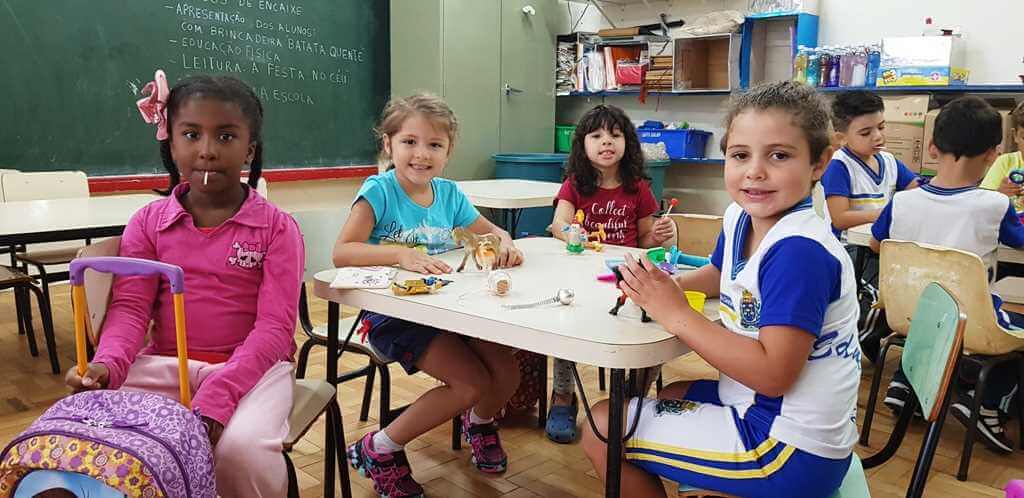 A manhã foi animada com a turma de cinco anos. “Eu quero saber sobre os fósseis”, disparou Gabriel que também contou uma história. O Vinícius estava tão animado que não lembrava o que tinha feito durante a manhã. “Eu já falei. Estou tentado lembrar aqui de novo”.