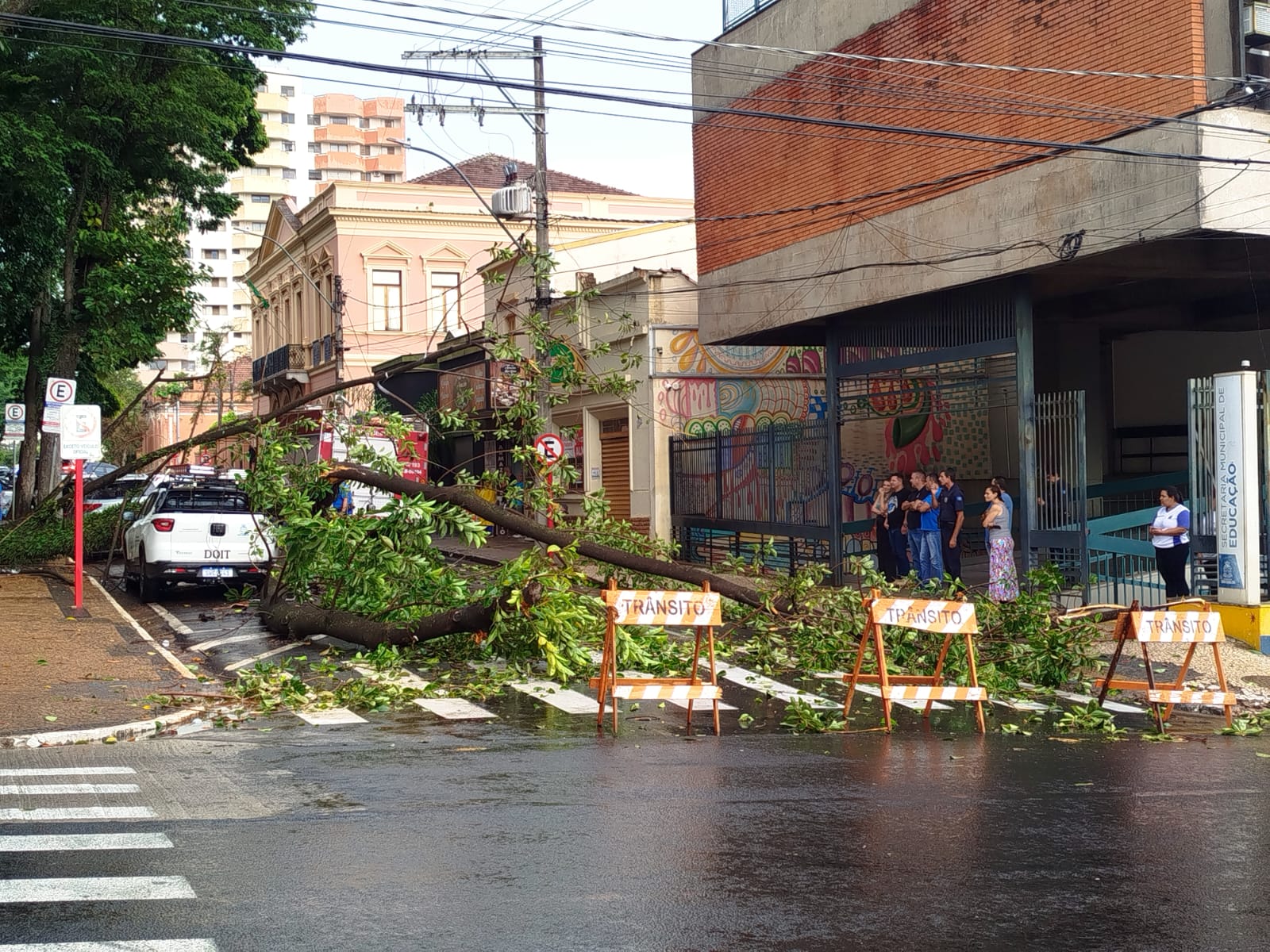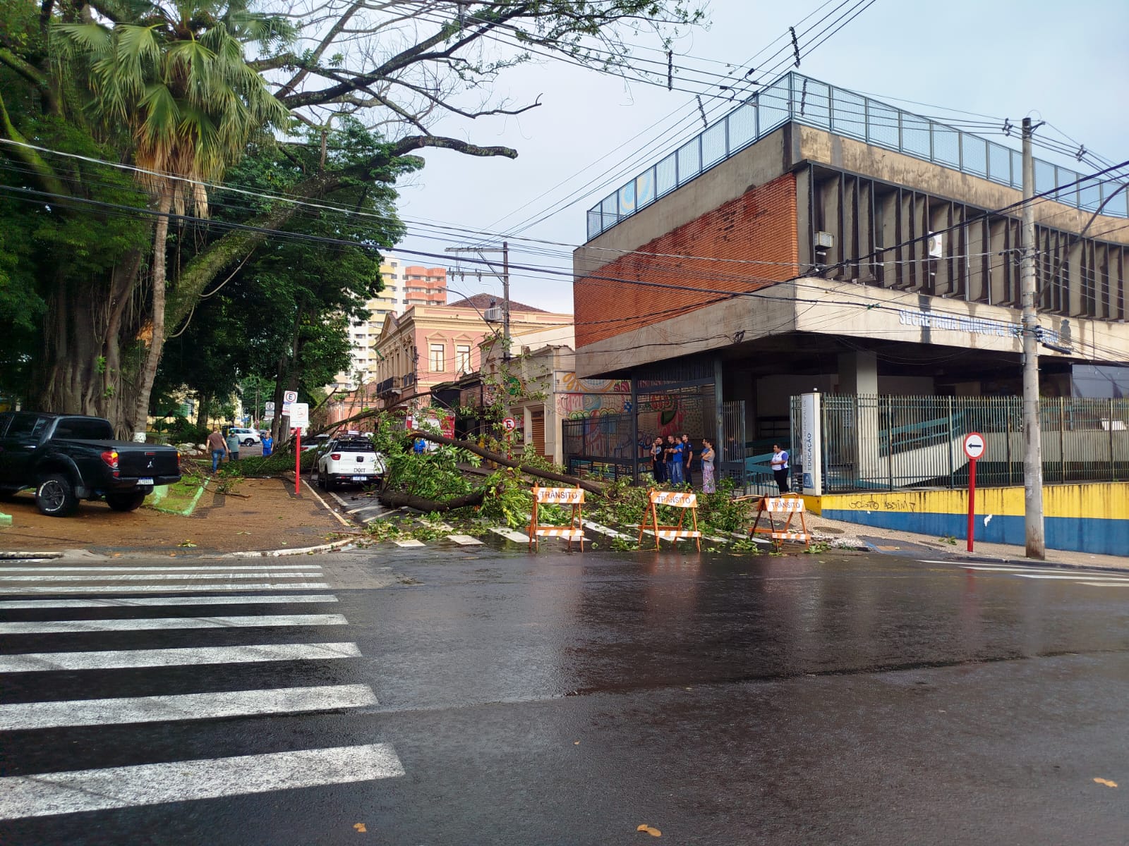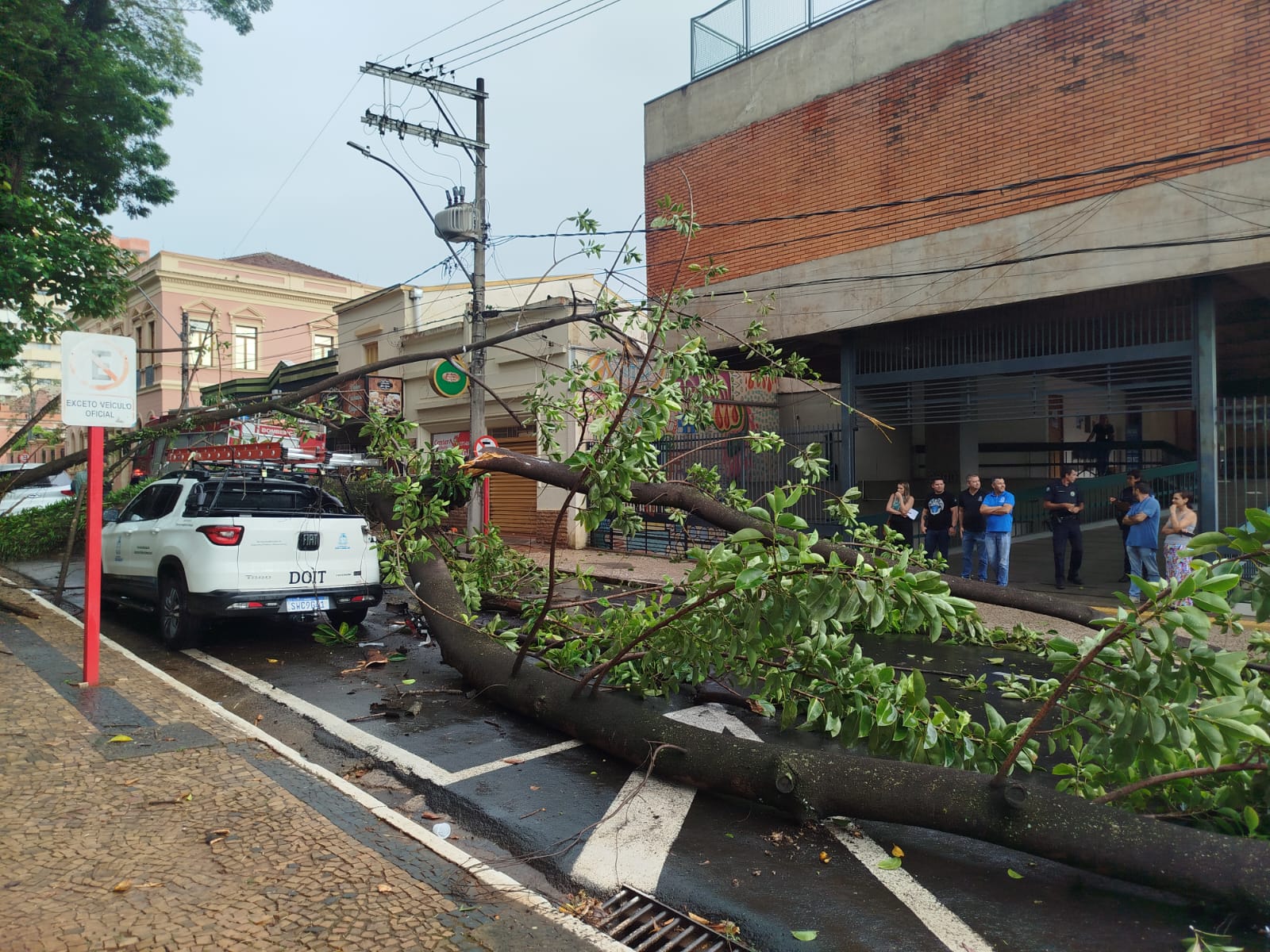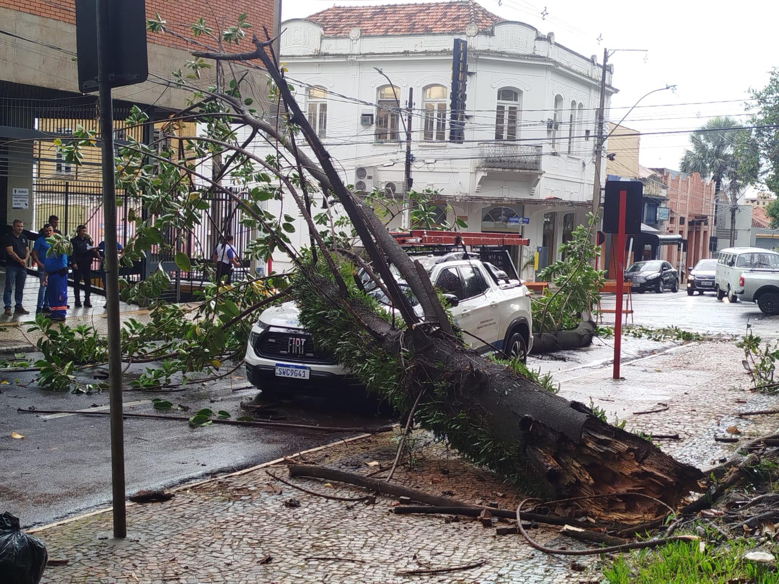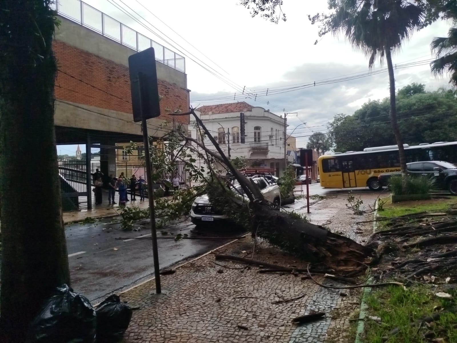 Árvore cai em carro da Prefeitura no Centro de São Carlos