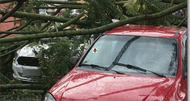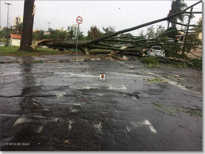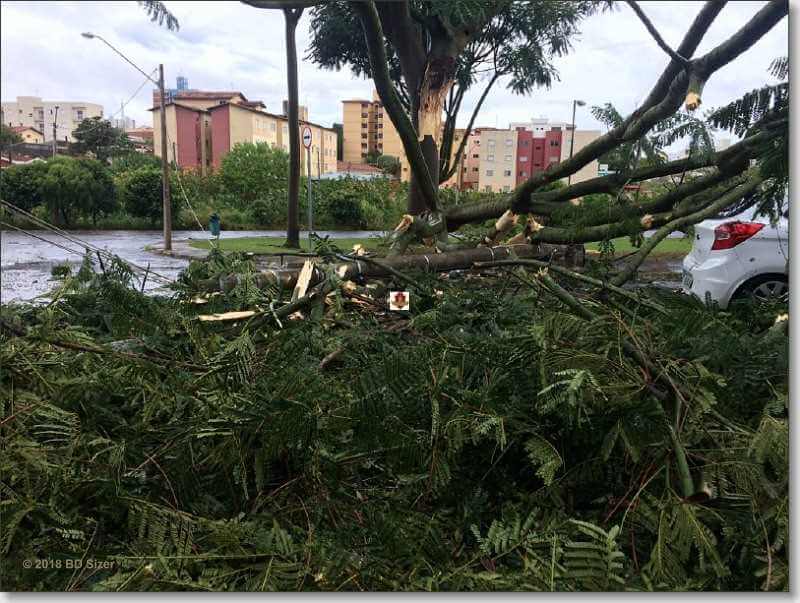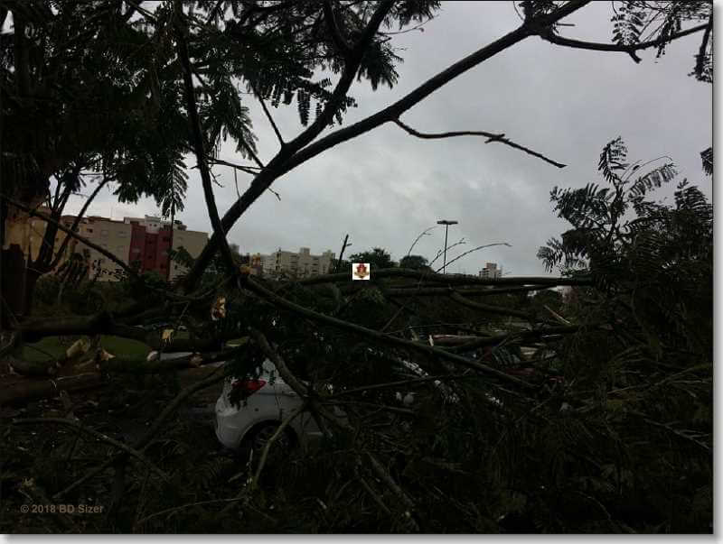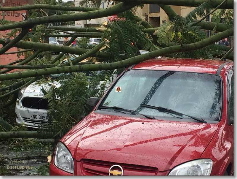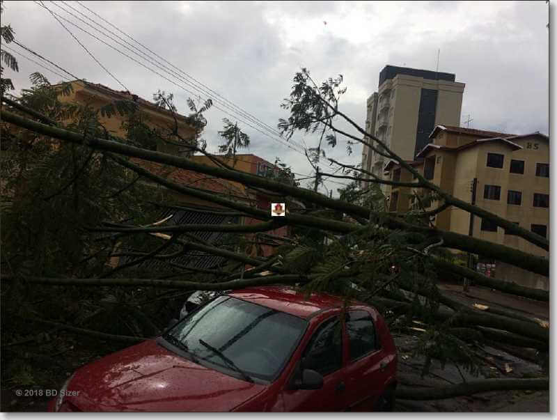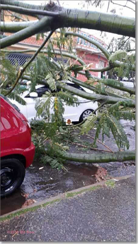A forte chuva que caiu em alguns pontos da cidade de São Carlos-SP, nesta manhã de sábado, 19 de maio de 2018, trouxe consigo também um forte vento. Por volta das 9:00 na Av. liberdade uma rajada de vento derrubou uma árvore em cima de dois carros na região do antigo kartódromo, região do bairro Santa Paula.