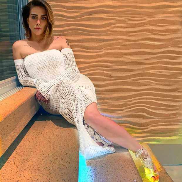 Já para Cleo, esta foi a produção da virada do ano. Com uma segunda peça branca usada por debaixo do vestido, a cantora deixou o vazado apenas aparente nas pernas e braços, combinando o look final a um sapato de salto alto.