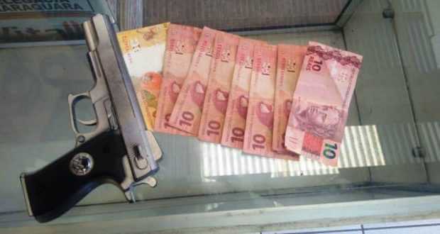 Segundo informações do boletim de ocorrência, o indivíduo ameaçou a vítima com uma arma falsa e fugiu levando 100 reais. A Polícia Militar foi acionada, e em buscas, localizou o indivíduo próximo ao bairro Serro Azul.