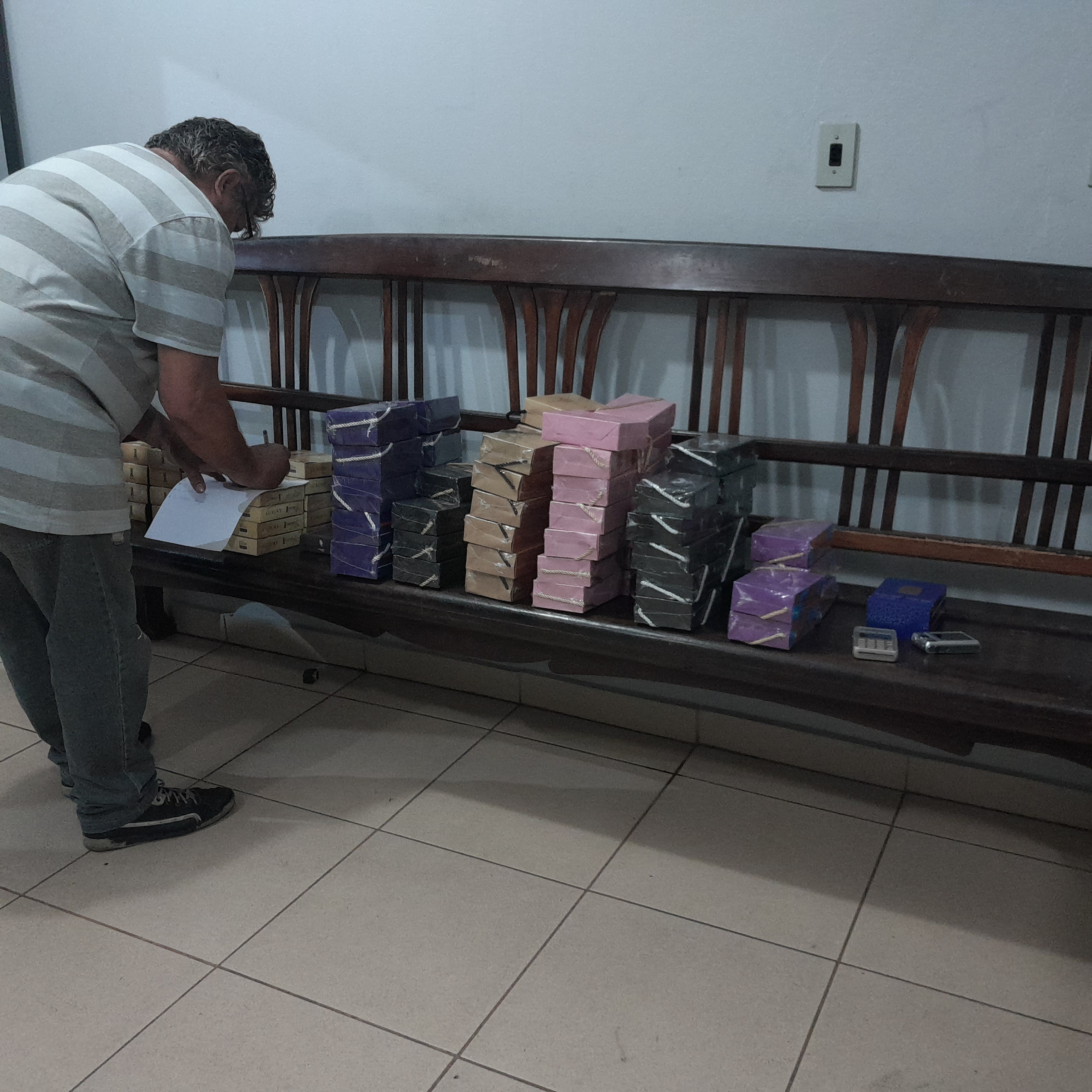 De acordo com boletim de ocorrência, por volta das 14h05, dois homens e duas mulheres, moradores em Ribeirão Preto, vendiam perfumes de porta em porta no bairro Cidade Aracy, quando as mulheres ofereceram para 4 homens que estavam na rua. Eles não quiseram comprar nenhum perfume. Estes 4 criminosos foram até o veículo Peugeot, o qual estava carregado com os perfumes, colocaram uma faca na barriga de um dos vendedores. Os bandidos disseram que iriam roubar o carro e as mercadorias, mas depois abandonariam o veículo. Um dos bandidos era gordo, aparentando 20 anos, com várias tatuagens nos braços, aparelho e boné colocou a faca na barriga da vítima e disse ” vou te rasgar “. Os quatro bandidos adentraram ao carro e fugiram. As quatro vítimas ligaram para a PM e passaram a caminhar sentido ao bairro Antenor Garcia. Ocasião, que cruzaram com dois criminosos, ambos correndo. Para sorte das vítimas, neste momento passou uma viatura do Rádio Patrulhamento. As vítimas apontaram os suspeitos, os quais foram detidos. E.K.M.N, de 19 anos, confessou que teria praticado o roubo. Já o adolescente de 15 anos negou ter participado do crime e disse que correu, pois estaria na traficância. Com ele nada de ilícito foi localizado. O maior levou os policiais até o local onde ele e os comparsas haviam abandonado o carro roubado e também onde teriam escondido os perfumes. A ocorrência foi encaminhada para a Central de Polícia Judiciária. O delegado de plantão, dr. Gilberto de Aquino ao tomar conhecimento do fato, autuou o maior de idade em flagrante e recolheu ao Centro de Triagem de São Carlos. O menor foi entregue para a família. Os objetos roubados e recuperados foram devolvidos para as vítimas.