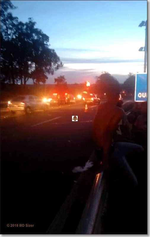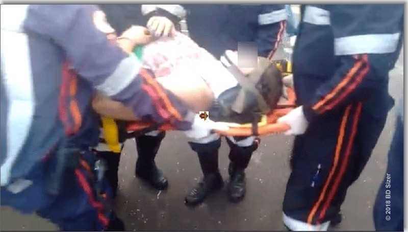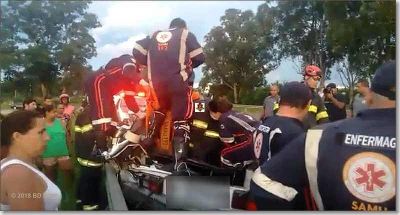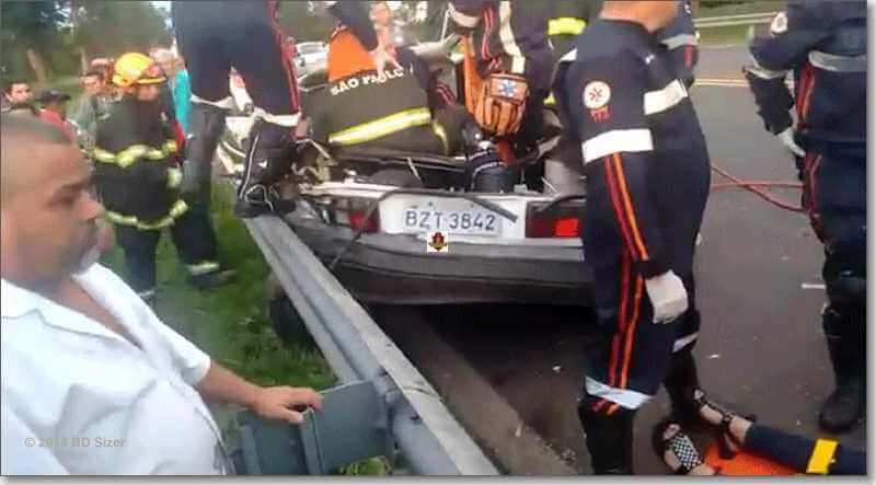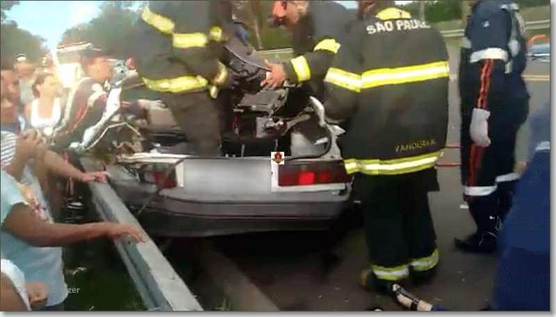 Depois fugiram, mas a PM foi acionada. Viaturas se depararam com o carro roubado e deu inicio uma perseguição, no trevo do bairro Cidade Aracy, o condutor do carro atingiu um Gol ocupado pelas as citadas vítimas. Após a colisão o Gol atingiu a defensa metálica e as pessoas ficaram retidas nas ferragens. O carro roubado acabou capotando. Os dois assaltantes foram detidos e constatado que eram menores de idade. Os feridos foram encaminhados à Santa Casa e os menores delinquentes ao Plantão Policial, onde ficaram à disposição da autoridade policial.