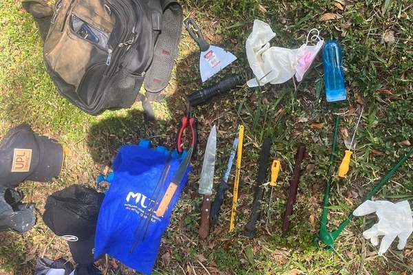 O condenado foi encontrado perto da casa da ex-namorada mais recente, que o havia denunciado por violência doméstica em janeiro último e terminado com Vinícius depois de descobrir que ele tinha matado Louise Maria. Com ele, os policiais ainda encontraram uma mochila com diversos objetos dentro, como facas, abraçadeiras, alicate, lanterna, serras, um frasco de lubrificante íntimo, além de uma mecha de cabelo.