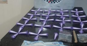 A Guarda Municipal deteve um adolescente nesta madrugada de sábado, 4 de junho de 2022, na Avenida João Stela, bairro Santa Felícia, São Carlos-SP. Segundo informações, quando avistou o jovem, este arremessou uma sacola em um terreno baldio. Nas suas vestes foram localizados 7 pinos de cocaína, 2 porções de maconha e um cigarro de maconha nas mãos. Após a ...