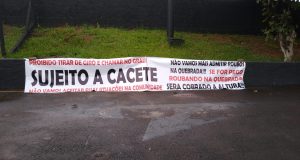 Nesta manhã de quarta-feira, 5 de janeiro de 2022, foi retirada uma faixa com dizerem ameaçadores que estava na Rua Jaime Bruno, cruzamento com a Rua José Geraldo Machado, bairro Antenor Garcia, São Carlos-SP. Não se sabe quem colocou a faixa no local. De acordo com boletim de ocorrência, o comando da PM deu a ordem para que policiais fossem ...