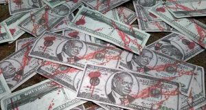 Em meio à crise que envolve offsshore e o nome do ministro Paulo Guedes, o chão em frente ao Ministério da Economia foi coberto de papéis que simulam notas de dólares, na manhã desta quinta-feira (7), em Brasília. As notas falsas estampavam o rosto do ministro Paulo Guedes ensaguentado e foram jogados por manifestantes. A Central Única dos Trabalhadores e ...