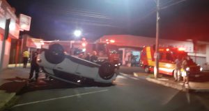 Enfermeira do SAMU capota carro no Centro de São Carlos