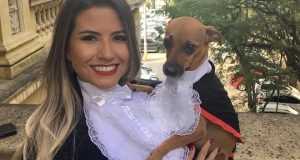 Uma estudante do curso de direito da Universidade Federal do Rio Grande do Sul (UFRGS), em Porto Alegre, resolveu fazer uma homenagem inusitada na formatura. Vicki, sua cadelinha adotada em 2014, vai aparecer no convite e nas fotos da cerimônia. “Foram noites em claro estudando. Perdi as contas de quantas horas ela já ficou no meu colo antes das provas. ...