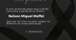 É com imenso pesar que a ACISC (Associação Comercial e Industrial de São Carlos) comunica o falecimento do senhor Nelson Miguel Maffei, ocorrido nesta terça-feira, dia 18 de junho de 2024. Nascido em 28 de outubro de 1930, Nelson Miguel Maffei dedicou sua vida ao desenvolvimento industrial de São Carlos, sendo um dos proprietários da renomada S/A Indústrias Giometti. Por ...