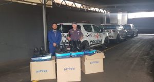 Na data de ontem (19), o Comandante da Companhia de Força Tática, Capitão PM Rodrigo Della Nina, recebeu a visita do vereador Moises Lazarine que entregou botas para serem utilizadas pelos policiais militares da equipe de Força Tática e ROCAM (Rondas Ostensivas com Apoio de Motocicleta) no serviço operacional. As botas foram adquiridas através de recurso de emenda parlamentar.
